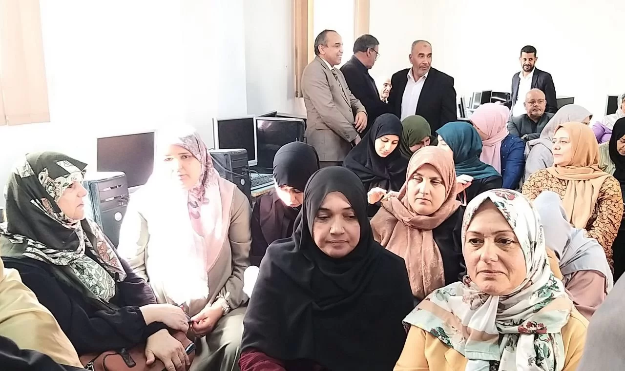 بحضور السيدة / وكيل الشؤون العلمية بالكلية د.نجاة القاضي والسيدة/ نقيب الكلية السابق/ د. نفيسة جالوتة وعدد من أعضاء هيئة التدريس بالكلية.