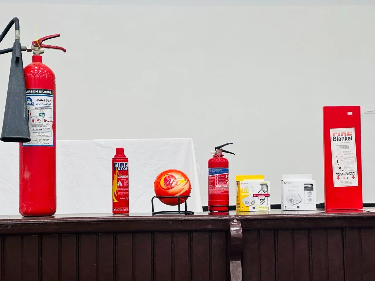 كما استعرض الأسباب المختلفة لحدوث الحرائق وأنواعها، وسبب انتشارها، وأوضح للحضور أنواع طفايات الحريق واستعرض أحجامها المختلفة وكيفية استخدام كل واحدة منها على حدة للتعامل مع الحريق وإخماده، وقام خلال الورشة بالإجابة على جميع استفسارات الحضور .