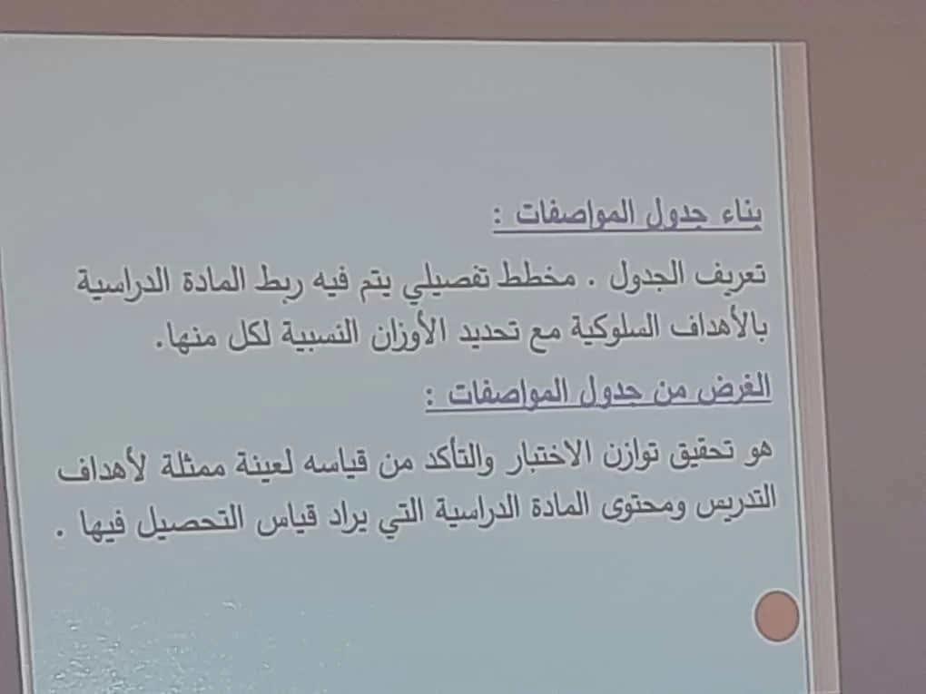 بناء جدول المواصفات