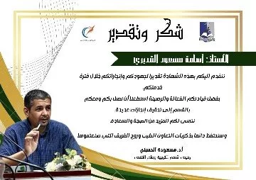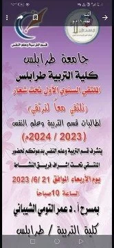 "في ملتقانا" 2023تم في الملتقى الأول لطالبات قسم التربية وعلم النفس تكريم رؤساء القسم السابقين على جهودهم الكبيرة التي قدموها في سبيل الرفع من مكانته وتسيير العملية التعليمية وتطويره وإرساء دعائمه. وكانت فترة توليهم الرئاسة بالترتيب كما يلي/ د/ هانم محمد الشريفد. محمد عمرو عسكر.أ.د. نجاة أحمد القاضي.أ.د. مسعودة مفتاح الحسيني..د. ماجدة علي أبومنجل.أ. أسامة مسعود القديري.شكرا لهم جميعاً وفقهم الله وبارك في جهودهم.