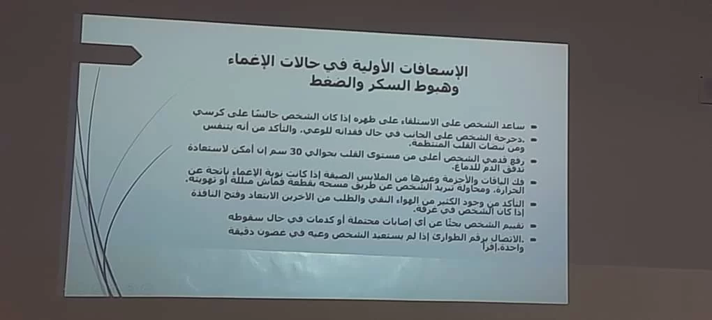 في إطار حرص قسم العلوم التربوية والنفسية على تنمية وتطوير مهارات الطالبات وتدريبهن على الإجراءات السريعة التي تتخذ في حالات الطوارئ (الإصابات، الحوادث، الحروق، أو الحالات الصحية). نظم ورشة عمل تدريبية بعنوان" مبادئ الإسعافات الأولية والطوارئ" وذلك يوم الأربعاء الموافق 4/12/2024 أشرفت عليها منسقة النشاط بالقسم وبمتابعة قسم النشاط بالكلية، بالتعاون مع شركة "بداية للتدريب والاستشارات"، حيث تم استضافة الدكتورة "مرام بن عيسى" لتقديم الورشة والتي تهدف إلى تدريب الطالبات على تقديم المساعدة والدعم الفوري لأنفسهم ولغيرهم والمحافظة على حياة المصاب وتقليل نسبة المخاطر حتى وصول المساعدة الطبية المتخصصة وتناولت الورشة الارشادات الأساسية التالية: