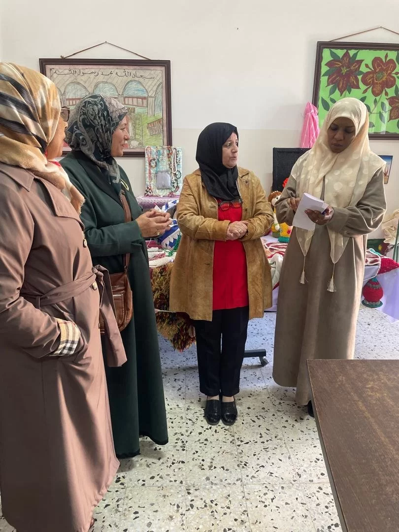 2. جولة بالأقسام التأهيلية، والإيوائية بالمستشفى. حيث الزائرون في أقسام المستشفى رفقة الأستاذة الفاضلة "سميحة السرتاوي" رئيس قسم الدعم النفسي، وشملت الزيارة قسم التأهيل: الذي يتولى تدريب وتأهيل النزيلات على الاشغال اليدوية من تطريز، وحياكة، وغيرها من الأعمال اليدوية. وتعرض فيه أعمال النزيلات الفنية، والأشغال اليدوية التي تعكس ميولهم الفني وإبداعهم في هذا المجال. كما تضمنت الزيارة جولة في قسمي (الغزالة) و (فاطمة) لإيواء النزيلات النساء أصحاب الحالات المستقرة.
