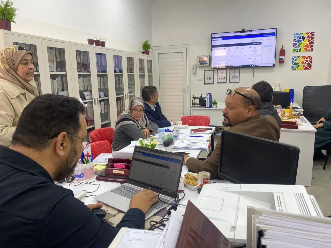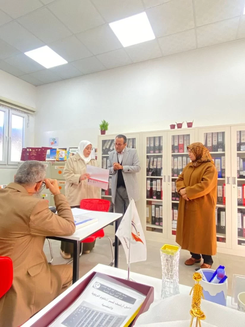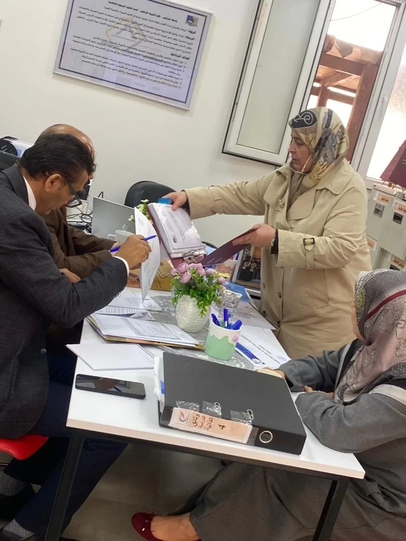 انطلقت يوم السبت الموافق لتاريخ 14/2/2026 كلية التربية طرابلس في مرحلة التدقيق الخارجي للأقسام العلمية من أجل الحصول على الإعتماد البرامجي من مركز ضمان واعتماد جودة المؤسسات التعليمية، واستقبل قسم العلوم التربوية والنفسية السادة المحترمين أعضاء اللجنة على فترتين، الفترة الأولى كان التدقيق على المعيار الأول(التخطيط والتنظيم الإداري) . الفترة الثانية التدقيق على المعيار الثالث الخاص (بأعضاء هيئة التدريس)، وتولى فريق الجودة بالقسم واللجنة العلمية عرض شواهد المؤشرات . اليوم الثاني الأحد الموافق 15/2/2026 انطلق فريق الجودة بالقسم منذ الساعات الأولى في عرض شواهد وأدلة المعيار الثاني (البرنامج التعليمي) والمعيار الرابع (الشؤون الطلابية) والمعيار السابع ( خدمة المجتمع والبيئة) على السادة الأفاضل أعضاء لجنة التدقيق المكلفة من قبل مركز ضمان واعتماد جودة المؤسسات التعليمية. يوم الإثنين الموافق 16/2/2026 عرض المعيار السادس ( البحث العلمي) والمعيار الخامس المرافق وخدمات الدعم الطلابي. والمعيار الثامن (ضمان الجودة وتقييم الأداء) .كل الشكر والتقدير لكافة أعضاء اللجنة الأفاضل على جهودهم وتفانيهم في عملهم نسأل الله لهم التوفيق. الشكر موصول للأستاذة فوزية أحمد الحصان مدير مكتب الجودة بالكلية على ماقدمته من جهود منقطعة النظير حتى وصلنا لهذه المرحلة. الشكر الجزيل لجهود فريق الجودة بالقسم . ا.د مسعودة الحسيني، ا.د. نجاة ألقاضي، ا. هدى الجحاوي، وداد عاشور، د. محمد الساحلي. د. أسامة القديري، فتحي مادي ، انتصار ابونعامة. ا. لبني ارحيم.ولا ننسى شكر إدارة الكلية والشؤون الادارية على الدعم والمساندة وتسهيل العمل.شكر خاص جداً لكافة الكوادر التدريسية بقسم العلوم التربوية والنفسية على تفانيهم في العمل وحرصهم على الاتقان فيه، وتقديم كل مابوسعهم لرفعة القسم والرقي به.هذه مرحلة انتهت لتفتح المجال أمام مرحلة جديدة تتمثل في الحصول على اعتماد مؤسسي جديد ، وكما خضناها سابقاً بعزم وإرادة قوية وتحدي للصعاب والعقبات نتوكل على الله وننطلق بكل عزم يحذونا الأمل والثقة بالله العلي القدير.