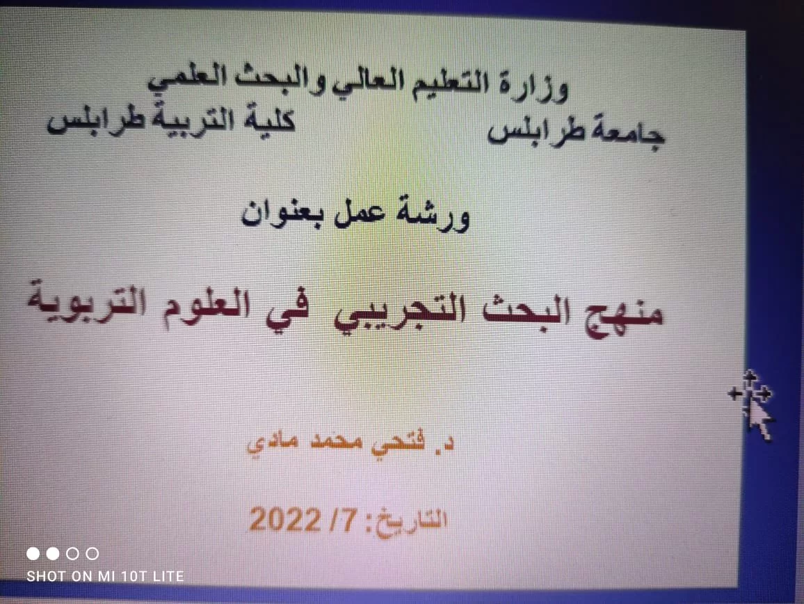 أعد وقدم الدكتور فتحي محمد مادي العباني (دكتوراه المناهج وطرق التدريس- تكنولوجيا التعليم)، ورشة عمل بعنوان "المنهج التجريبي في العلوم التربوية"، قدمها لأعضاء هيئة التدريس بالقسم.
