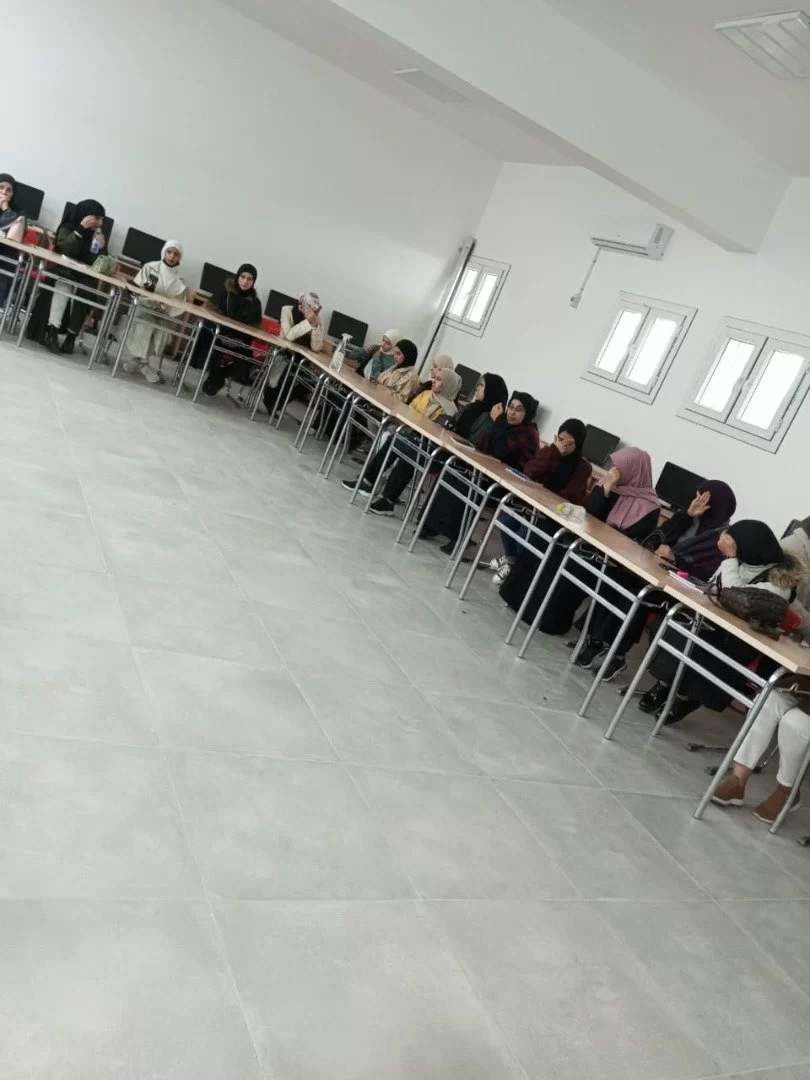 أنتقل الجمع الكريم (الطالبات وأعضاء هيئة التدريس والممثلات عن اتحاد الطلبة)، إلى معمل قسم اللغة الإنجليزية، حيث أنتقل البرنامج من جولة حول أقسام ومكاتب ومرافق الكلية، إلى جولة تثقيفية توعوية تربوية علمية.