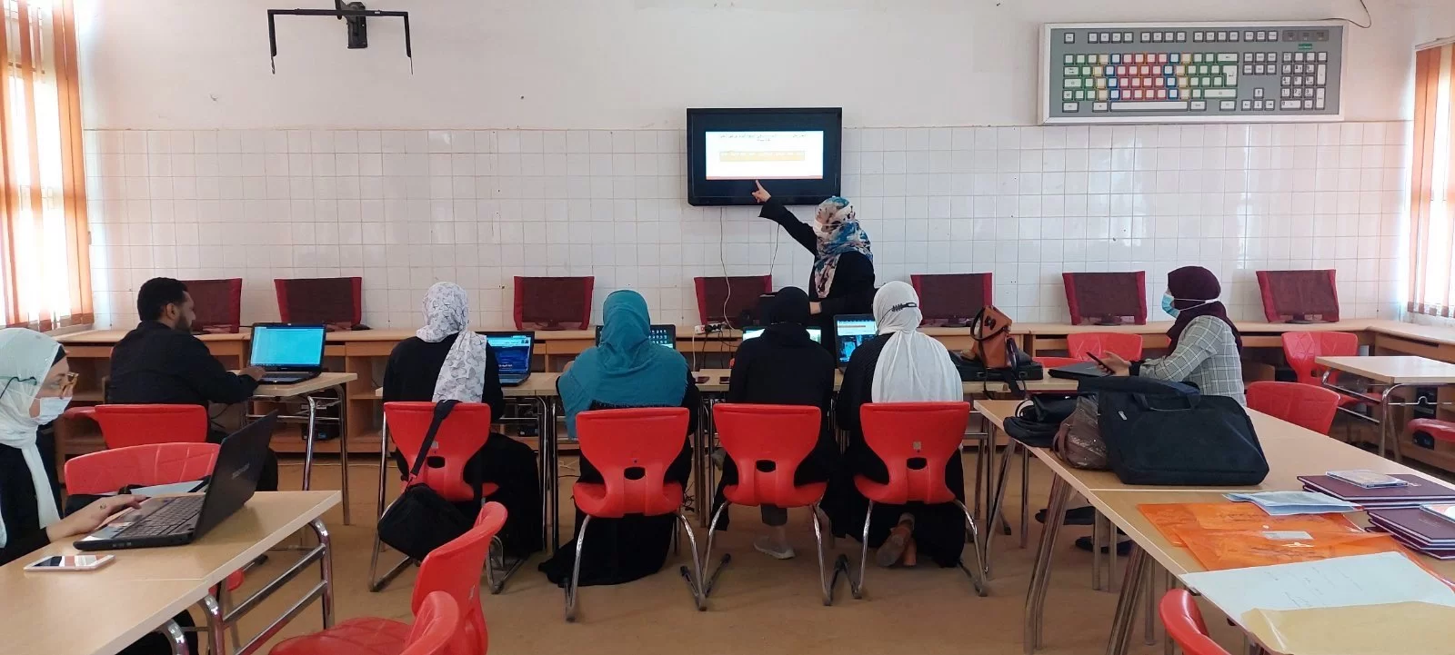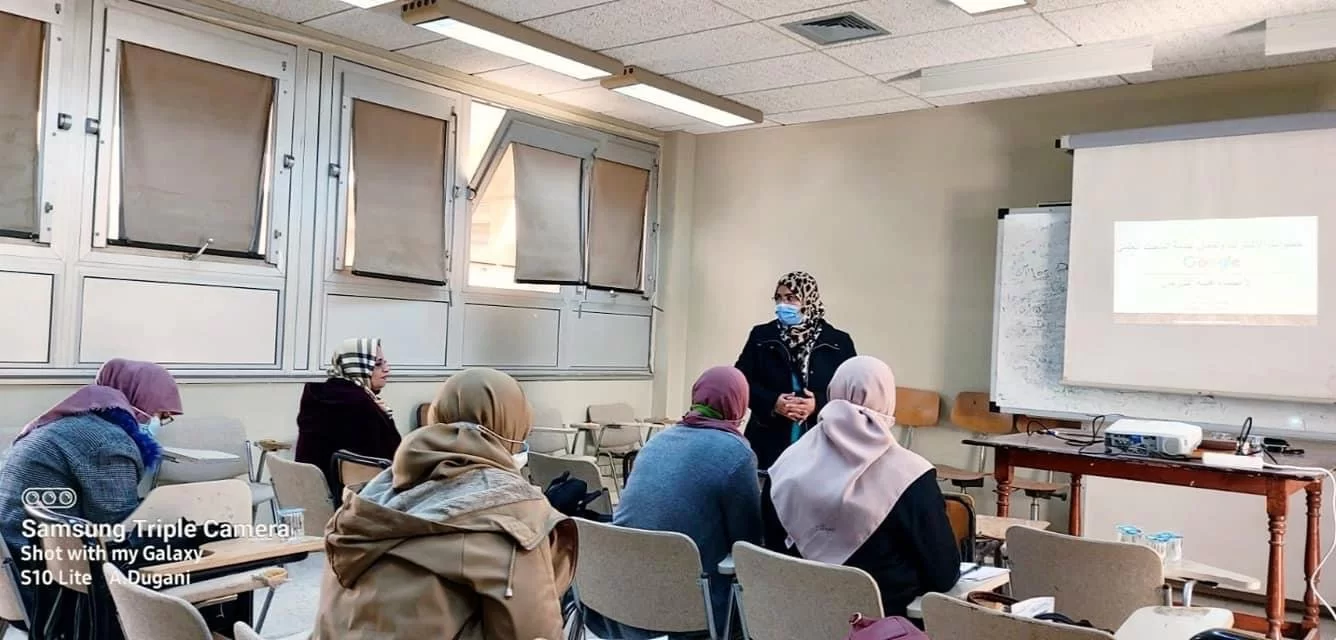 التربية طرابلس د. إنتصار الشريف بعقد ورشة عمل لبعض أعضاء هيئة التدريس بقسم اللغة الانجليزية بكلية التربية طرابلس، بمعمل قسم اللغة الإنجليزية، وذلك بالتنسيق مع د.