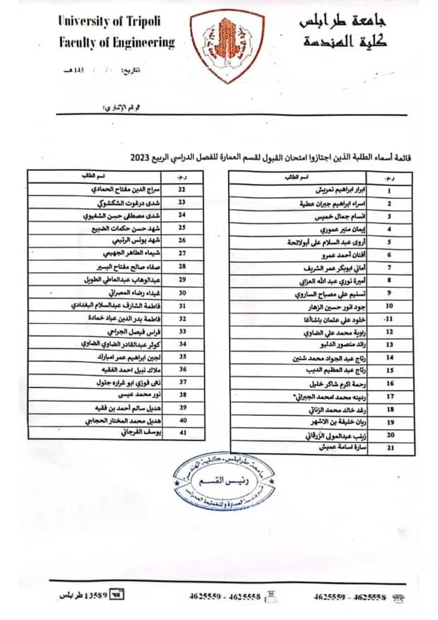 أسماء الطلبة المقبولين بقسم هندسة العمارة والتخطيط العمراني