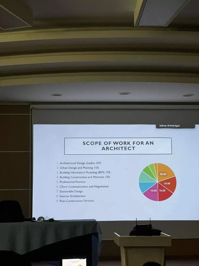 من ضمن مناشط قسم هندسة العمارة والتخطيط العمراني اقام القسم ورشة عمل للدكتور أحمد العجيل، أستاذ مساعد في جامعة الإمارات العربية المتحدة، بعنوان "التعليم المعماري - الابتكار في تعليم وتعلم الهندسة المعمارية". عبر الانترنت يوم لخميس 13 يونيو 2024 الساعة 11:30 صباحاً . والتي تناولت منهجيات التدريس المبتكرة، تصميم وتطوير المناهج، والتقييم والتقويم.