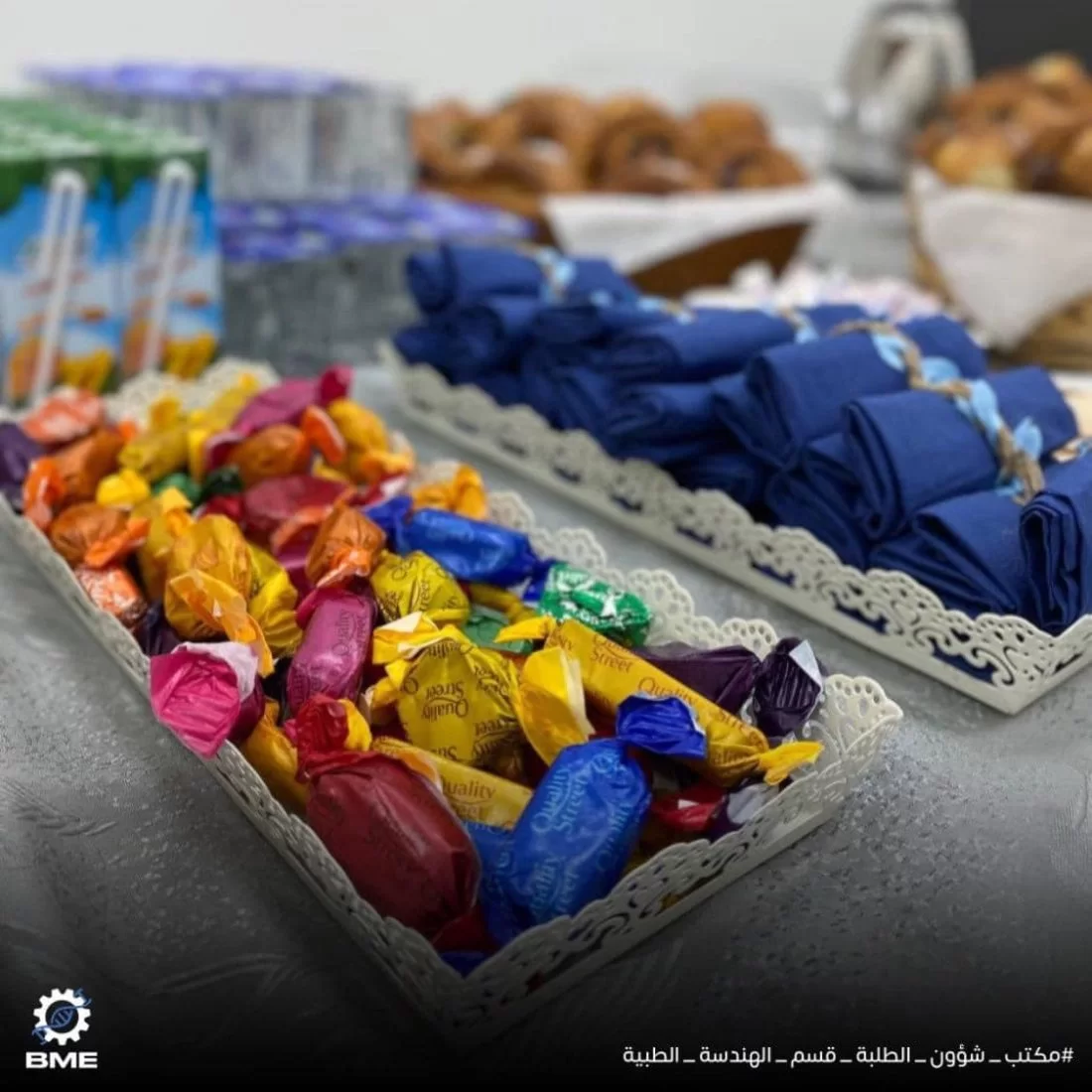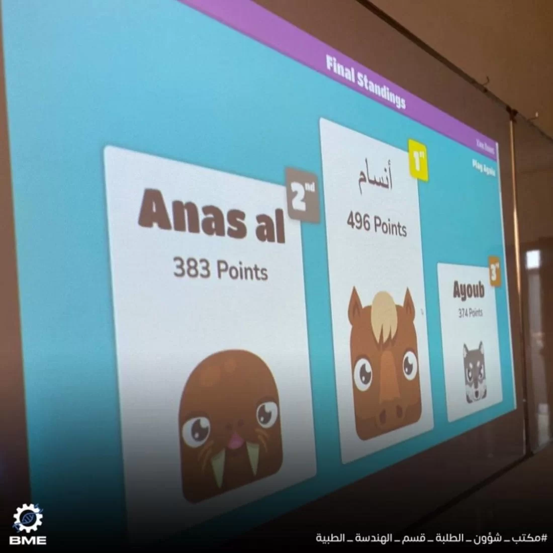 سُعدنا بتواجد جميع زملائنا وأعضاء هيئة التدريس باليوم التعارفي لطلبة قسم الهندسة الطبية الحيوية ، والذي تضمن فقرات وفعاليات متنوعة للتعريف بالقسم والرحلة الدراسية فيه ومجالات العمل للخريج، بالإضافة لعمل مكتب شؤون الطلبة بالقسم وما يقدمه من خدمات ،كما تم الإعلان عن البوت الخاص بقسم الهندسة الطبية الحيوية الذي يحوي كل ما يحتاجه الطالب من مناهج ومصادر للمواد الدراسية وأخيرا اختتم اليوم ببعض المسابقات الترفيهية والثقافية ، كل الشكر لجميع من حضر ونرجوا أن يكون هذا اليوم قد نال إستحسانكم .نترككم مع مجموعة من الصور التي توضح فعاليات اليوم ،شاركونا بصور أخرى من تصويركم كما ننتظر آرائكم في التعليقات .