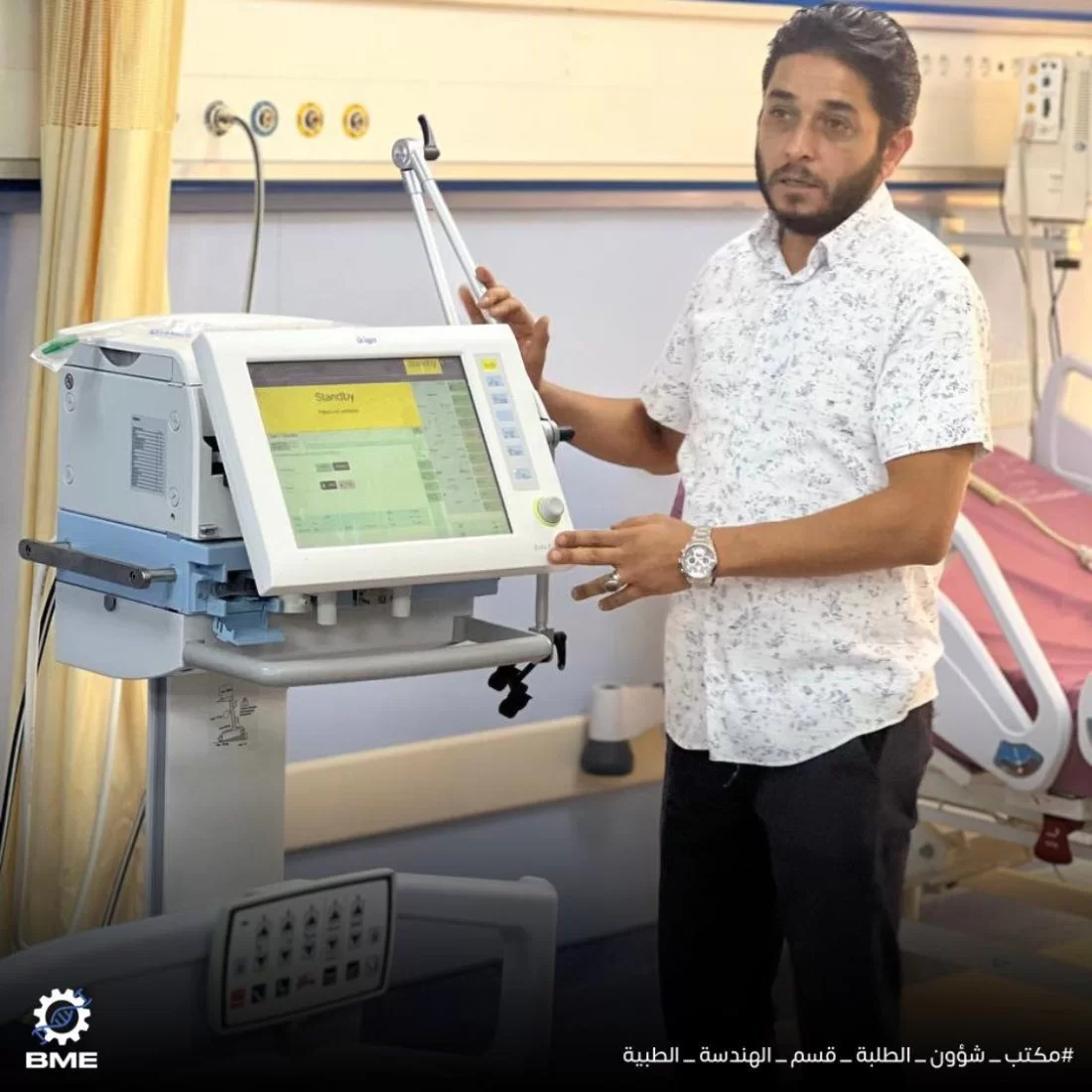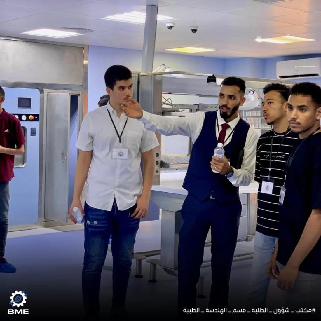 انطلقت الزيارة العلمية الأولى لهذا الفصل صباح يوم الأربعاء الموافق 31-7-2024 مستهدفة طلبة الفصل الأول بالقسم نحو مستشفى الحوادث ابوسليم تضمنت الزيارة جولة تعريفية بأقسام المستشفى المتنوعة كما عرّف المهندسون بالمستشفى الطلبة على أهم الأجهزة في كل قسم وكيفية عملها، بدءاً من غرفة العناية المشددة مرورا بقسم وصولاً لقسم التعقيم بالمستشفى ، حيث وضحوا أهمية الهندسة الطبية في الرعاية الصحية ودورها الكبير في العملية التشخيصية والعلاجية للمرضى .نشكر إدارة مستشفى أبوسليم على حفاوة استقبالهم وتعاونهم الكبير في الشرح للطلبة في انتظار تعاونات أخرى مستقبلاً .