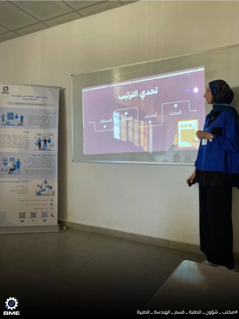 انطلقت اليوم ورشة كتابة المقالة العلمية بعطاء المهندسة شذى الويفاتي ،تضمنت الورشة أساسيات كتابة المقالات العلمية بطريقة مبسطة والخطوات المتبعة في عملية البحث والصياغة ، تهدف هذه الورشة للرفع من مهارات الطلبة في البحث والكتابة وتشجيعهم على المشاركة بنصوص ضمن مجلة الهندسة الطبية الحيوية الطلابية التي سيتم إصدار أول عدد منها قريبا