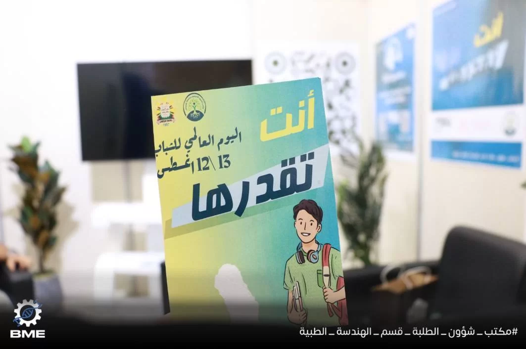 على مدار اليومين الماضيان 12-13 أغسطس شارك مكتب شؤون طلبة قسم الهندسة الطبية الحيوية بحدث أنت تقدرها المقام بمناسبة اليوم العالمي للشباب بتنظيم مكتب تدريب الخريجين جامعة طرابلس.تضمنت المشاركة جناحا مخصص لبودكاست MedEngineers التابع لمكتب شؤون الطلبة، حيث تمت استضافة مجموعة من زوار المعرض في لقاءات مباشرة حول مواضيع تهم الشباب الجامعي لتبادل وجهات النظر المختلفة ليكون مساحة للتعبير عن الآراء.نشكر مكتب تدريب الخريجين على تعاونهم في التنظيم في انتظار تعاونات أخرى مستقبلاً.