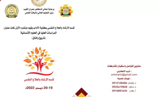 كلية الآداب - مؤتمر قسم الارشاد والعلاج النفسي: الدراسات العليا في العلوم الإنسانية (تاريخ وآفاق) 19 - 20 ديسمبر 2022م