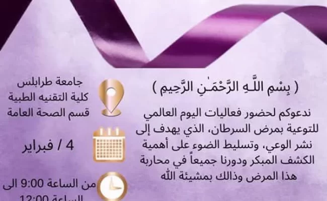 دعوه لحضور فعاليات اليوم العالمي للتوعية بمرض السرطان