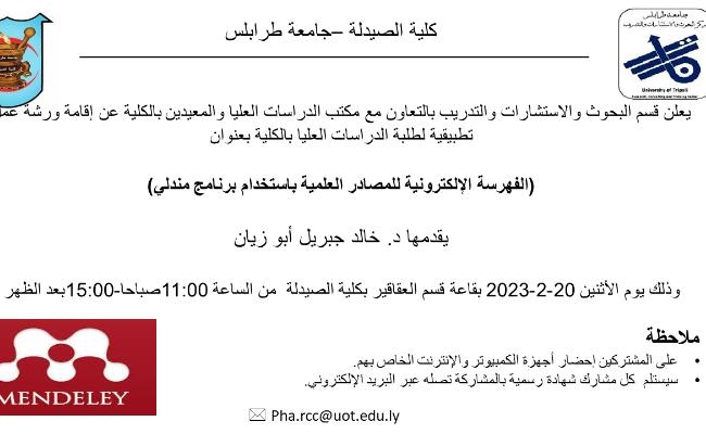 ورشة عمل حول (الفهرسة الإلكترونية للمصادر العلمية باستخدام برنامج مندلي)