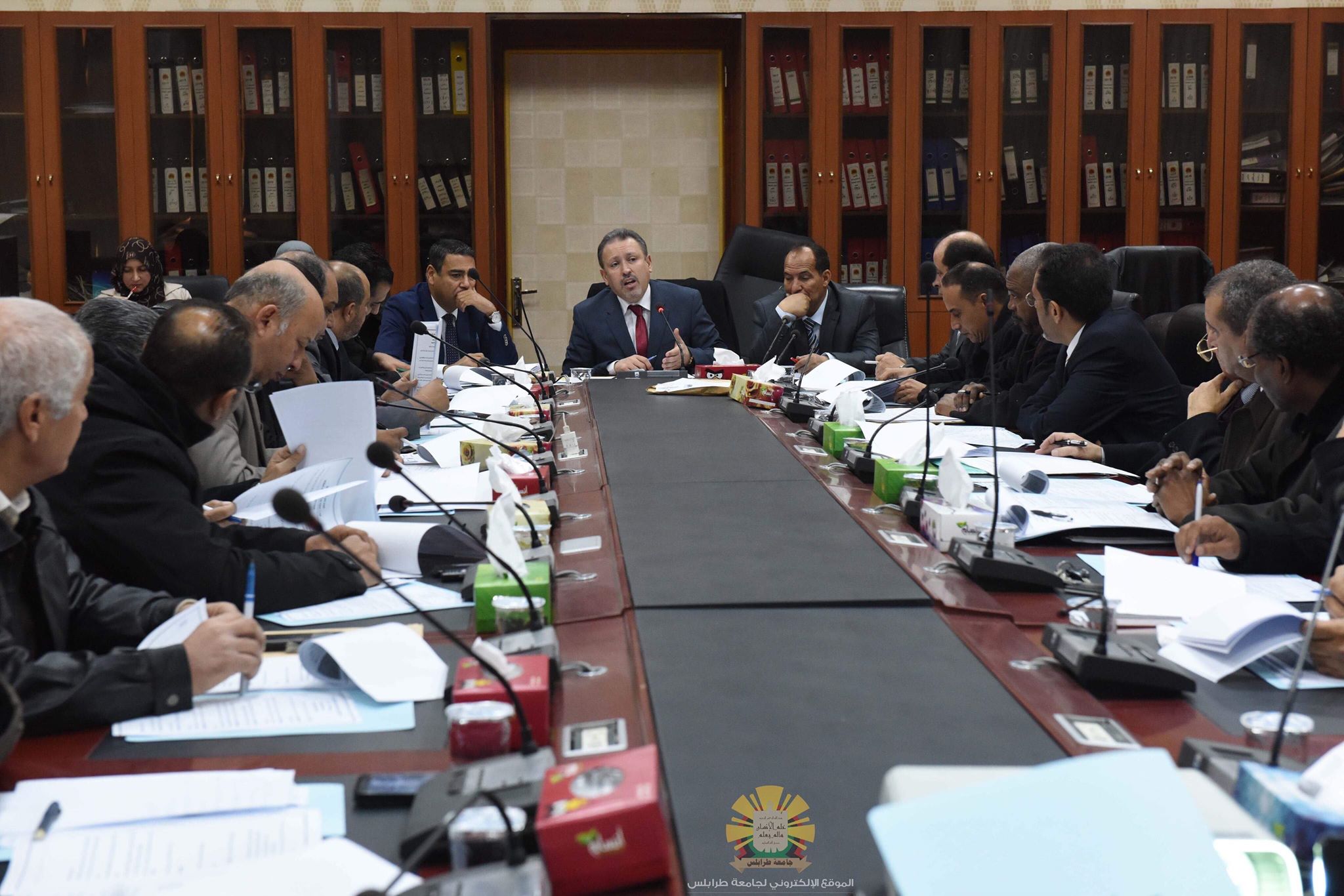 اجتمع صباح اليوم الاثنين الموافق للرابع من فبراير 2019 بقاعة الاجتماعات الرئيسية أعضاء مجلس الجامعة، وذلك بحضور رئيس المجلس الأستاذ الدكتور "نبيل النطاح" رئيس جامعة طرابلس والدكتور "مبروك فارس" وكيل الشؤون العلمية والأستاذ الدكتور "عبد الرزاق العوزي" وكيل الكليات الطبية والدكتور "إبراهيم بوفائد"