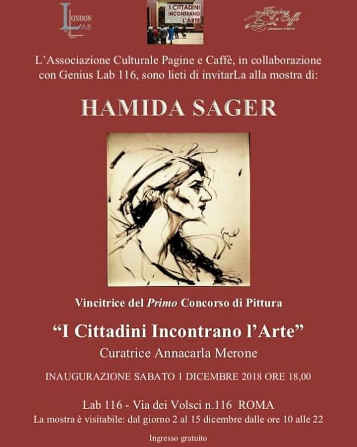 افتتحت الفنانة التشكيلية وعضو هيئة التدريس بكلية الفنون والإعلام بجامعة طرابلس " حميدة صقر" معرضها الشخصي الثاني بعنوان "تأملات"، في حفل نظمته المنظمة الثقافية الإيطالية تكريما لها ،بالعاصمة الإيطالية روما، وذلك بعد ما تحصلت على المركز الأول في جائزة معرض " المواطنين يلتقون الفن "، في ح