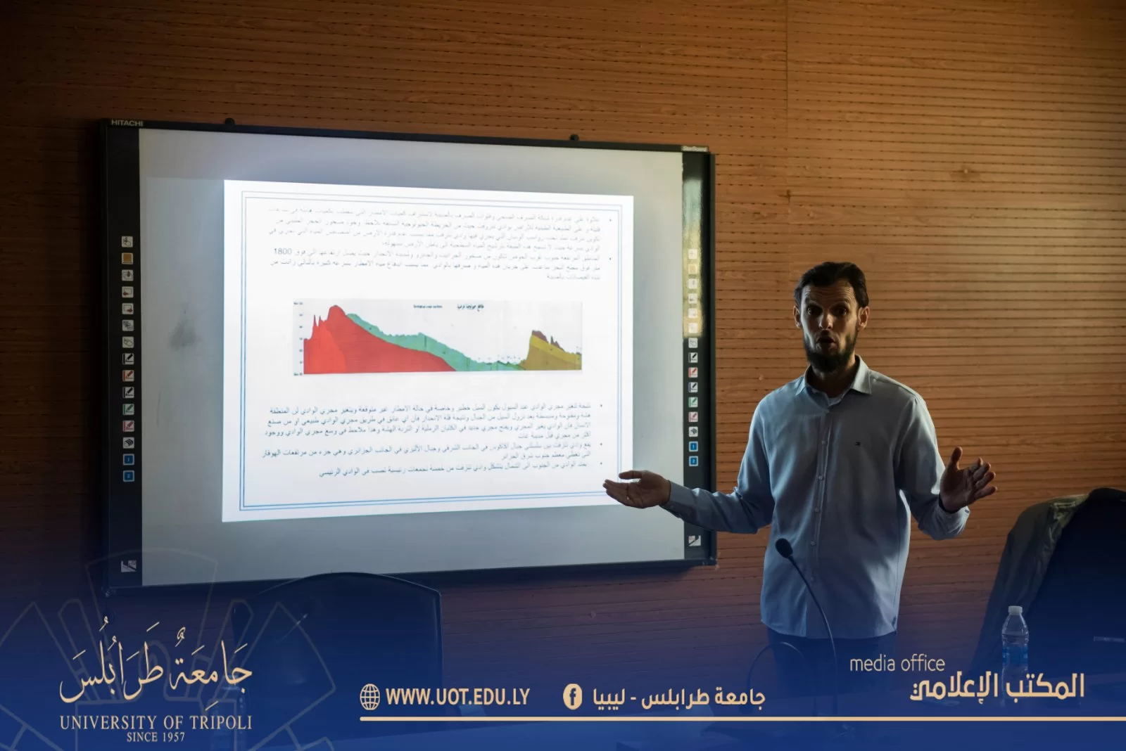 نظم مكتب التعاون الدولي بكلية العلوم - جامعة طرابلس صباح اليوم الأربعاء الموافق 21 ديسمبر 2022م على تمام الساعة 11:00 صباحاً بصالة البلازما محاضرة علمية بعنوان: " التحليل الجيومورفولوجي لوادي تنزفت وتأثير مخاطر الفيضانات على مدينة غات باستعمال RS/ArcGis "، حيث ألقى المحاضرة السي