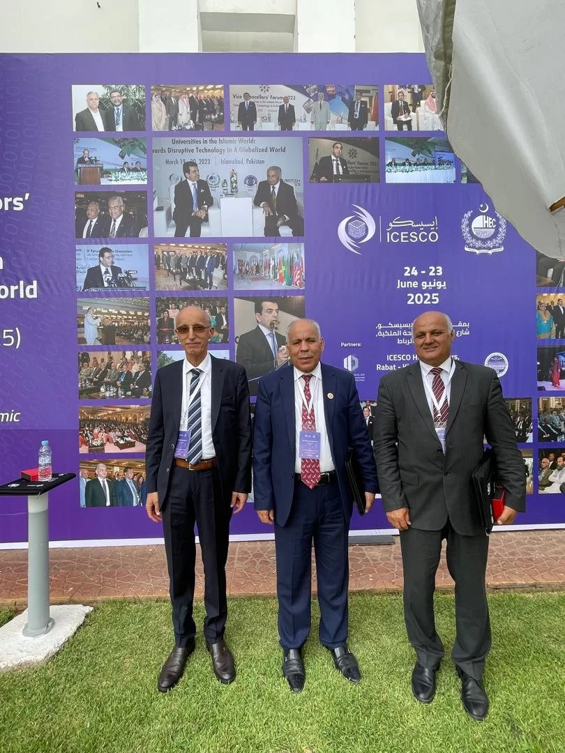 شارك السيد رئيس جامعة طرابلس في منتدى رؤساء جامعات منظمة العالم الإسلامي للتربية والعلوم والثقافة (ايسيسكو) بمقر المنظمة في الرباط (22-23 يونيو 2025) والذي عقد تحت عنوان اعادة تصور التعليم في العالم الإسلامي: الابداع والاستدامة والأثر العالمي . كما شارك في احدى جلسات الحوار التي عقدت