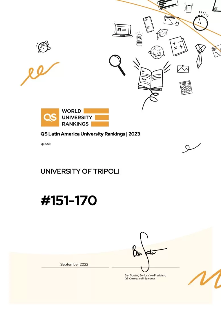 جامعة طرابلس تدخل قائمة أفضل 170 جامعة عربية حسب تصنيف "QS" لعام 2023 ميلادي