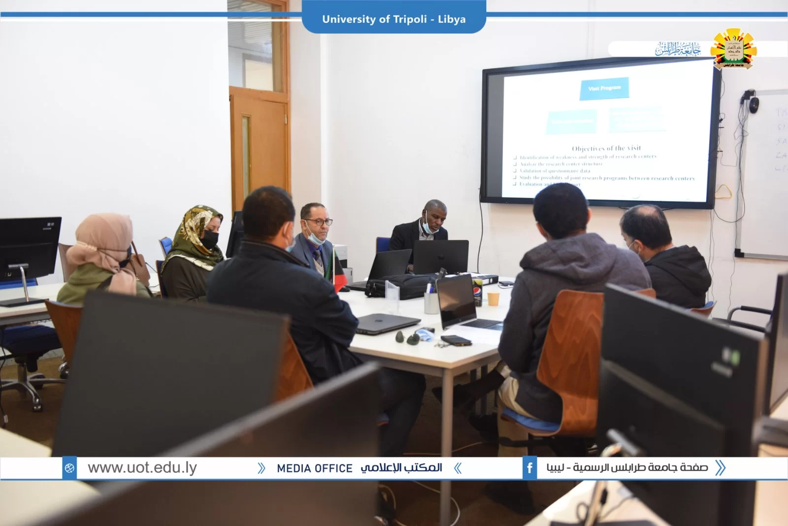 بقاعة التواصل بمكتب التعاون الدولي بجامعة طرابلس زيارة ميدانية تقديمية لمشاريع بناء القدرات بجامعة طرابلس والمدعومة من وحدة المشروعات بالاتحاد الاوروبي.