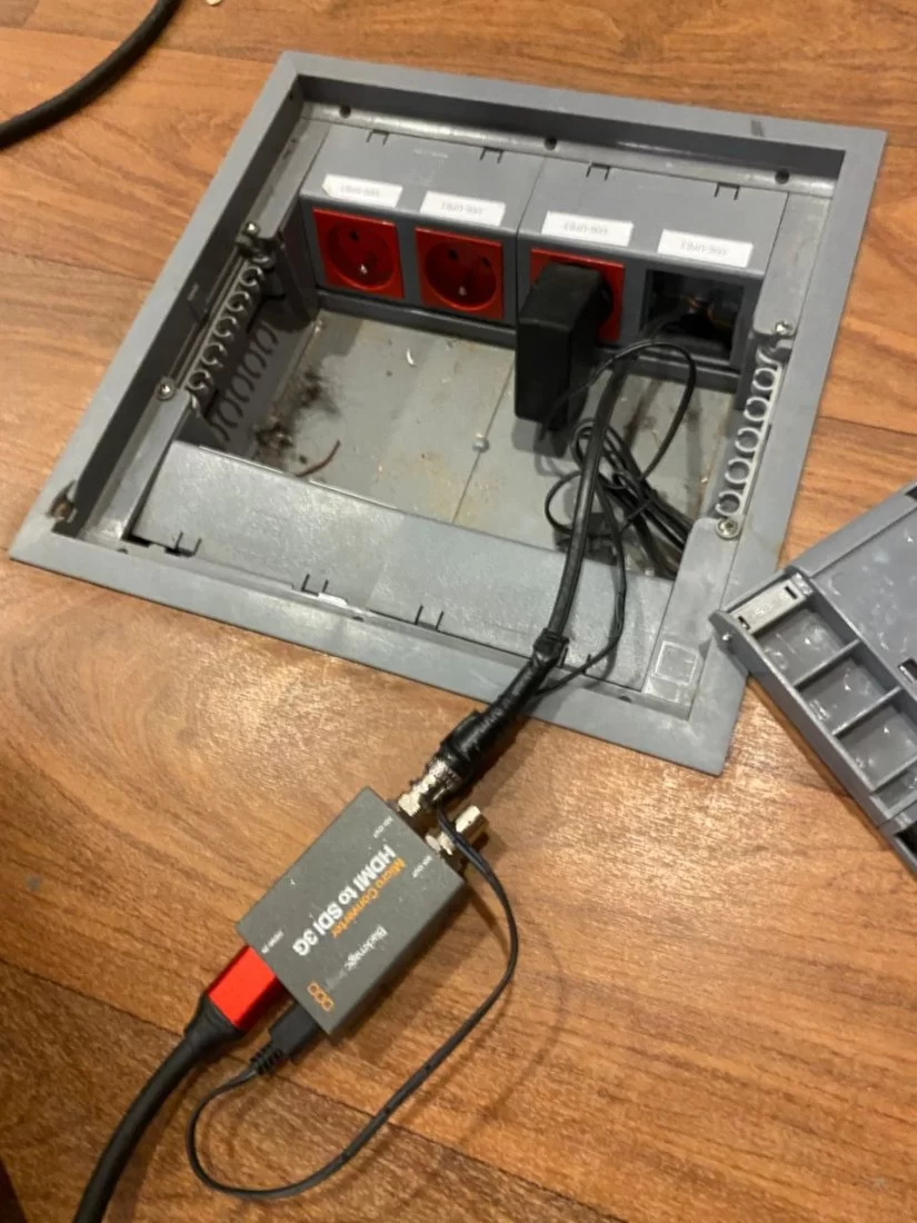 في أثناء الجولة، عاين المهندسون وقاموا بتعديل أجهزة العرض (Data show).