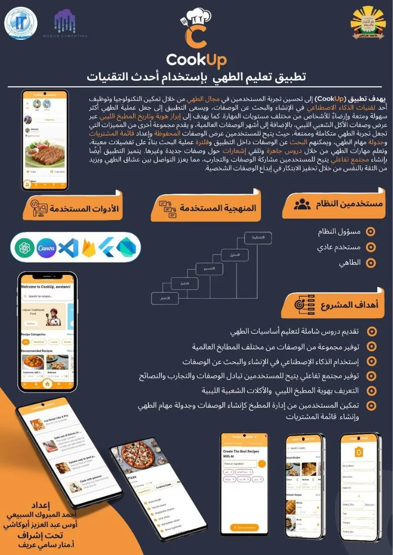 7- تطبيق لتعليم الطبخ " Cook Up"، تحت اشراف الأستاذة الفاضلة: ا/منار عريف، ومن إعداد الطلبة: