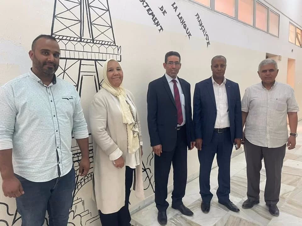 تشرف قسم اللغة الفرنسية/ كلية اللغات / جامعة طرابلس يوم الإثنين الموافق 25 يولية باستقبال السادة وكيل وزارة التعليم لشؤون المراقبات الدكتور. محسن الكبير ومستشار معالى الوزير الدكتور. عبدالسلام الصغير وتم فى اطار هذا الاستقبال التنسيق مع رئيس واساتذة القسم لعودة اللغة الفرنسية للتعليم الثانوى.