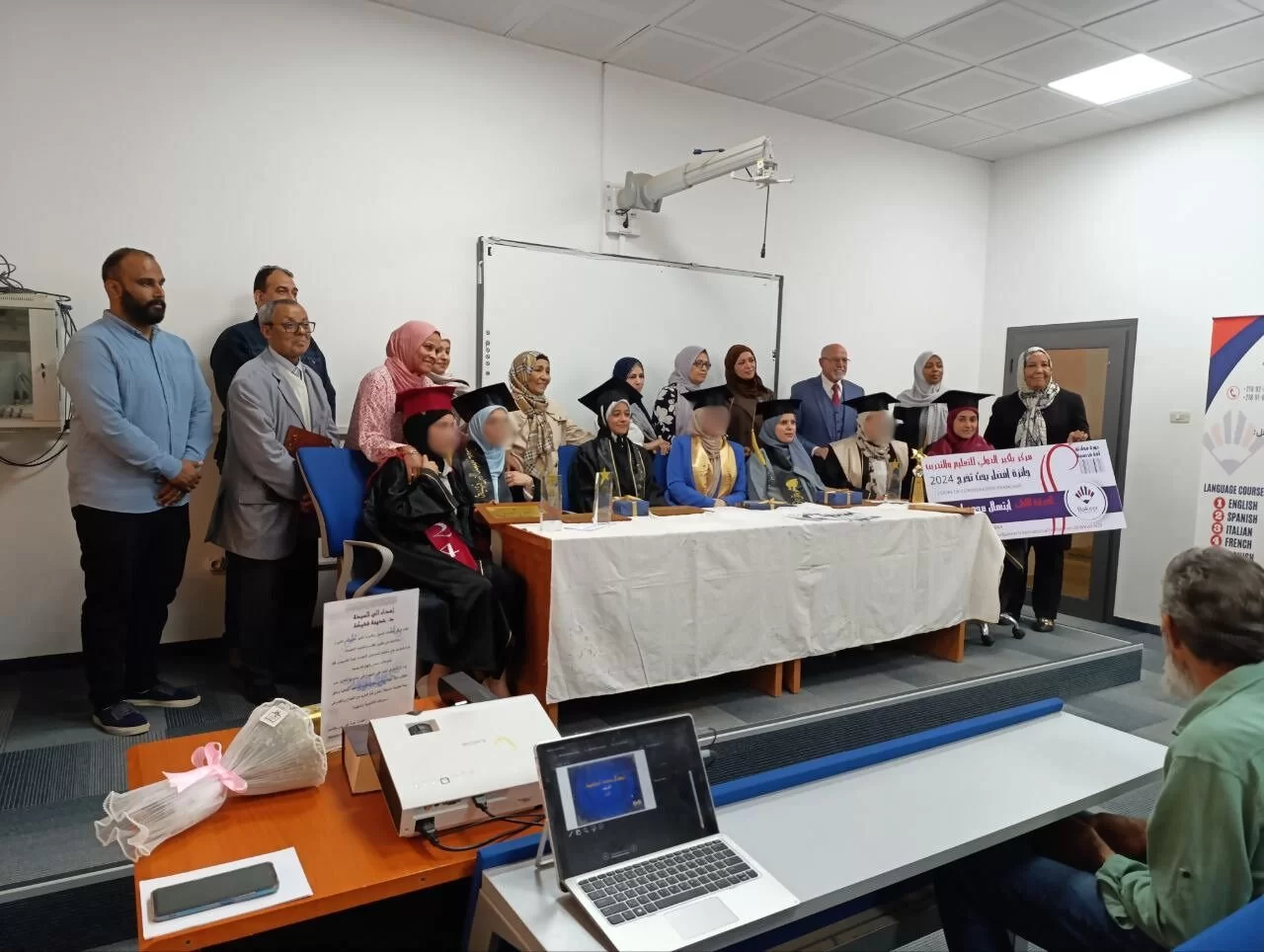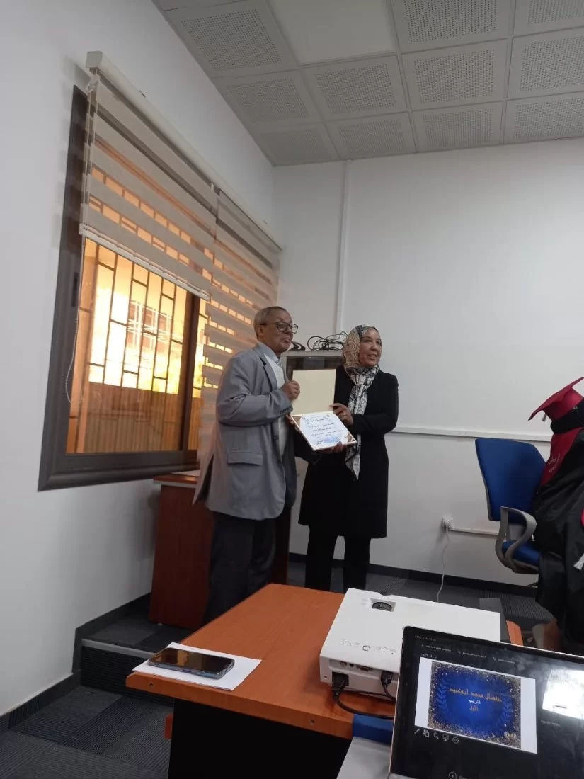 وحضر الاحتفالية كل من: السيدة رئيس مكتب دعم وتمكين المرأة بجامعة طرابلس أ. منية الصويعي، والسيدة مدير مكتب خدمة المجتمع بكلية الصيدلة د.امال خليفة بلعيد والسيد مدير مركز باكير الدولي للتعليم والتدريب د. عبد المنعم الفلاح الذي قدم جوائز قيمة للحائزات على المراكز الثلاث الأولى، وأعضاء هيئة التدريس بالكلية والطلبة والطالبات واولياء الأمور. في ختام الاحتفالية كرم أعضاء هيئة التدريس بالقسم د.خديجة فشيكة، رئيس القسم لمجهوداتها القيمة.