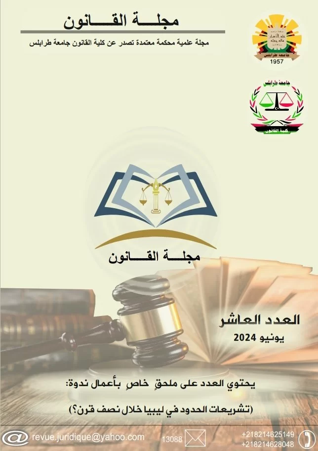 تعلن هيئة تحرير مجلة القانون جامعة طرابلس عن صدور العدد العاشر (يونيو - يوليو 2024)،والذي جاء زاخرا بالعديد من الدراسات والأبحاث القانونية التي خضعت للتحكيم والمراجعة اللغوية قبل نشرها..كما يتضمن العدد أيضا ملحقا خاصا بالأوراق العلمية المقدمة في ندوة تشريعات الحدود في ليبيا خلال نصف قرن ؟)
