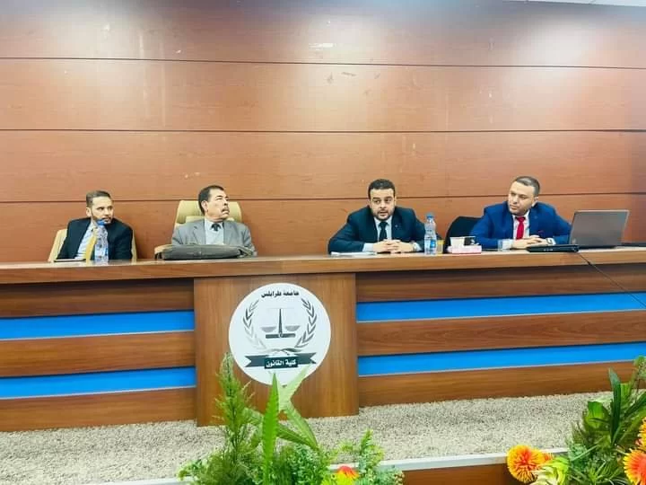 عقد صباح اليوم الإثنين الموافق 22/ يناير/ 2024 بكلية القانون جامعة طرابلس ،جلسة حواريه بعنوان (مبدأ الفصل بين السلطات كضمانة أساسية لتطبيق القواعد الدستورية) ألقاها نخبة مميزة من أساتذة الكلية وبحضور أعضاء هيئة التدريس ، وطلاب مرحلتي الماجستير والدكتوراة والمهتمين والقانونين.
