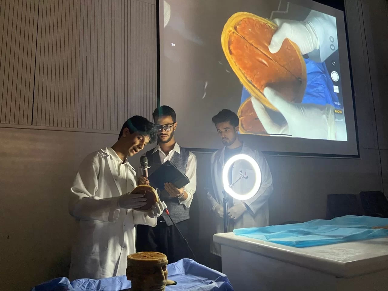 وكانت بداية هذا اليوم بكلمة ترحيبية من السيد عميد الكلية "ا.د خالد قدارة" وايضا كلمة رئيسة قسم التشريح والأجنة "د. سارة المقيرحي" التي فيها عرفت بالقسم .