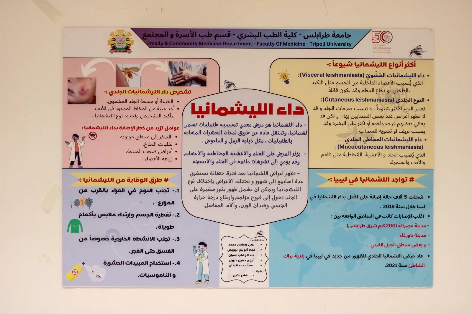 أقيم يوم الإربعاء معرض التثقيف الصحي الثالث لطلبة قسم طب الأسرة والمجتمع الذي كان بحضور وكيل كلية الطب البشري وأعضاء هيئة التدريس والمعيدين بالقسم حيث قام إتحاد طلبة كلية الطب البشري بتنظيم هذا المعرض تحت رعاية ودعم مستشفى غوط الشعال التخصصي وشركة مودرن هوم
