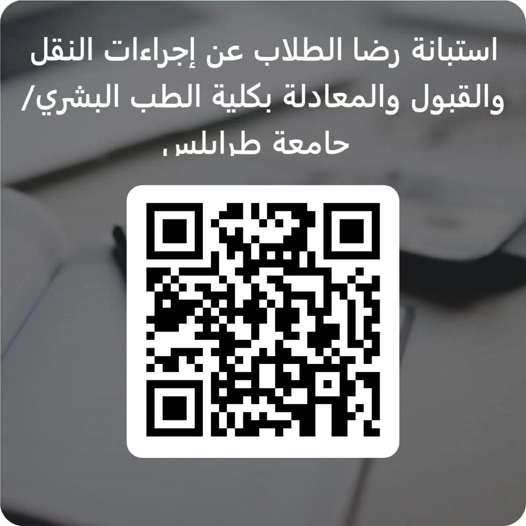 استبانة رضا الطلاب عن إجراءات النقل والقبول والمعادلة بكلية الطب البشري/ جامعة طرابلس Mar 10, 2026ابناؤنا