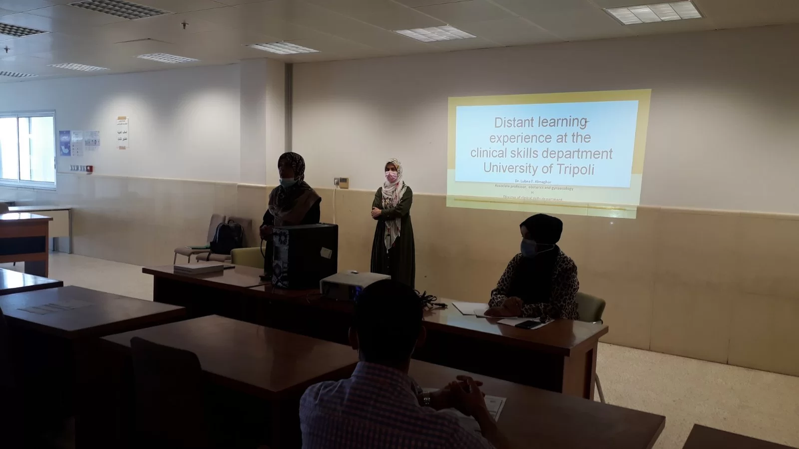 تم بحمد الله عقد ورشة عمل بمكتبة كلية الطب البشري يوم الخميس الموافق 30/9/2021 حول ((التعليم الإلكتروني)) وأهميته واهم المنصات المستخدمة في هذا المجال، وشارك في هذه الورشة شركة ((ميم)) المصممة لمنصة اشرح لي، حيث قاموا بتقديم شرح مستفيض لكيفية استخدامها، وايضا" شارك الدكتورعبد السلام النويصري بمحاضرة عن اهمية ال Class hub، ثم القت الدكتورة لبنى المقهور محاضرة بعنوان ((تجربة قسم المهارات بإجراء الامتحان النهائي العملي الكترونيا")) وكان لاتحاد الطلبة مشاركة مميزة اثرت هذه الورشة بعنوان ((تجربة الطلبة باستخدام غرفة التيليجرام في نشر المحاضرات والدروس المعملية لفصل الخريف 2020-2021م)) القاها الطالب المميز اسلام التايب، وحضر هذه الورشة كل من عميد الكليةا.د. فاتن بن رجب، ورئيس قسم التعليم الالكتروني د. ابراهيم زبيدة، ورئيس قسم الجودة بالكلية رؤساء الاقسام العلمية ومنسقي التعليم الالكتروني ورئيس قسم الدراسة والامتحانات واتحاد طلبة الكلية.