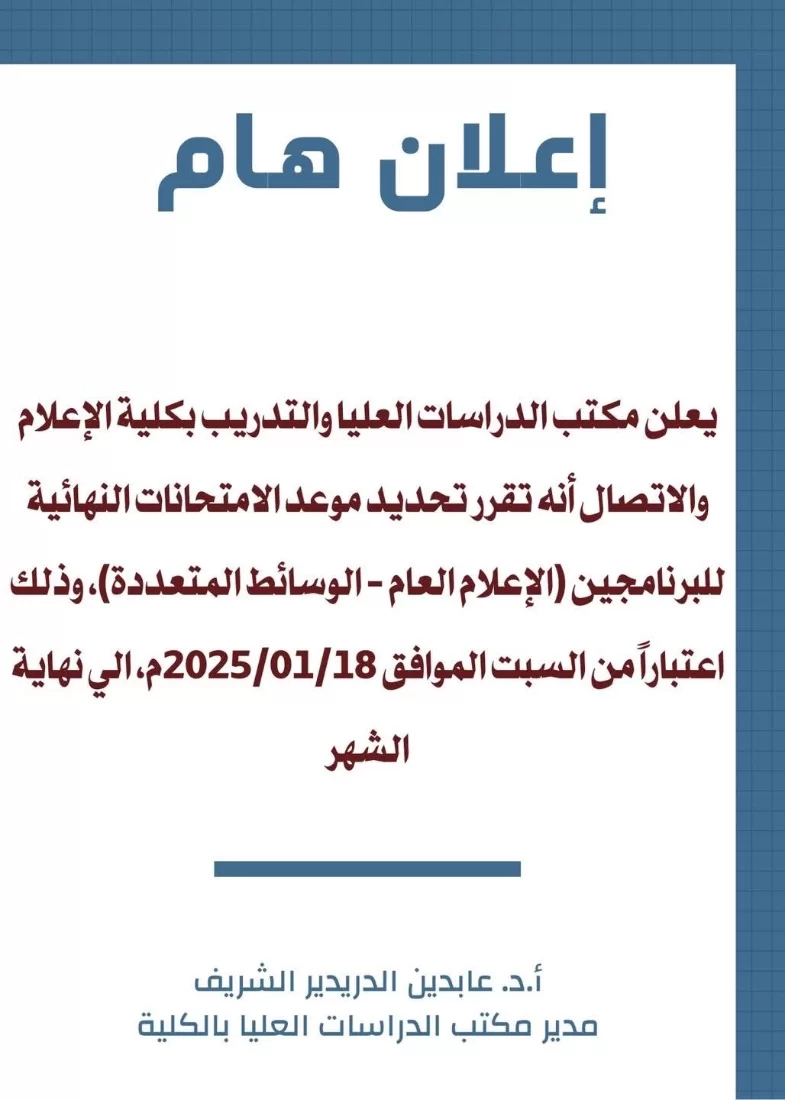 | #إعلان_هام |تُعلن رئاسة جامعة طرابلس، استجابةً لرغبات الطلبة ودعمًا لهم، عن تغيير موعد بدء المحاضرات الدراسية ليصبح الساعة 09:00 صباحًا بدلًا من 08:00 صباحًا، وذلك تماشيًا مع التوقيت الشتوي وحرصًا على مراعاة تأخر موعد الشروق.#المكتب_الإعلامي_بجامعة_طرابلس