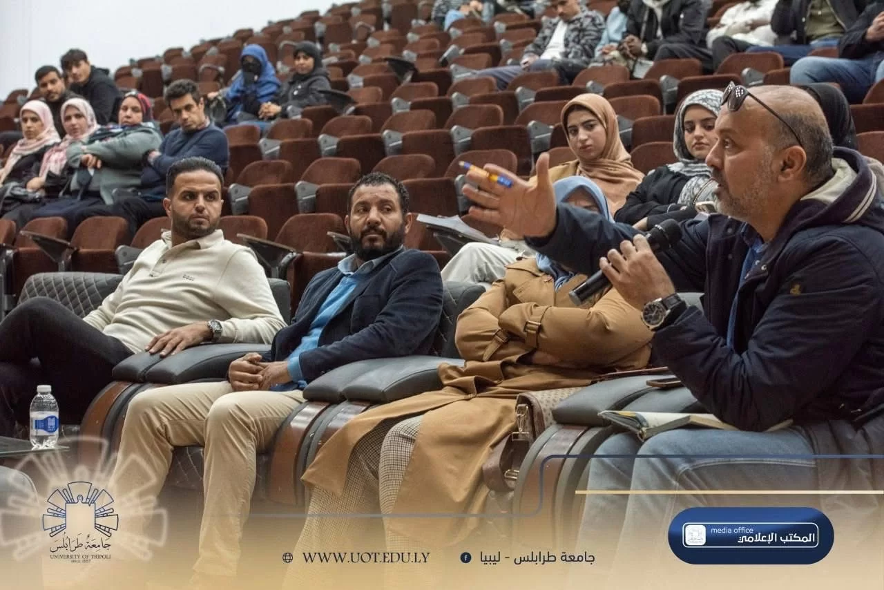 أقيمت صباح الأمس الأحد الموافق، 12 يناير 2025م، ندوة حوارية في مدرج رشيد كعبار تحت عنوان "دور مؤسسة الرعاية الصحية الأولية في تحسين الخدمات الصحية في ليبيا"، بحضور السيدة د. صفية بن مسعود، رئيس قسم الصحافة بكلية الإعلام والاتصال رفقة السيد د. الأمين دردور، رئيس قسم الفنون المرئية بكلية الفنون والتصميم والسيد د. عبد المجيد الساعدي، والسيد أ. عبد الله الترهوني، مدير المكتب الإعلامي بجامعة طرابلس، والسيدة فوزية الكميشي، رئيس قسم طب الأسرة بمؤسسة الرعاية الصحية الأولية، والسيد فوزية البوراوي، رئيس وحدة الأمراض المزمنة الغير سارية، والسيد أ. الصادق البهيليل، مُنسق الصحة المدرسية بمؤسسة الرعاية الصحية الأولية بالإضافة إلى لفيف من طلبة كلية الإعلام والاتصال وبعض الكليات الأخرى بجامعة طرابلس.