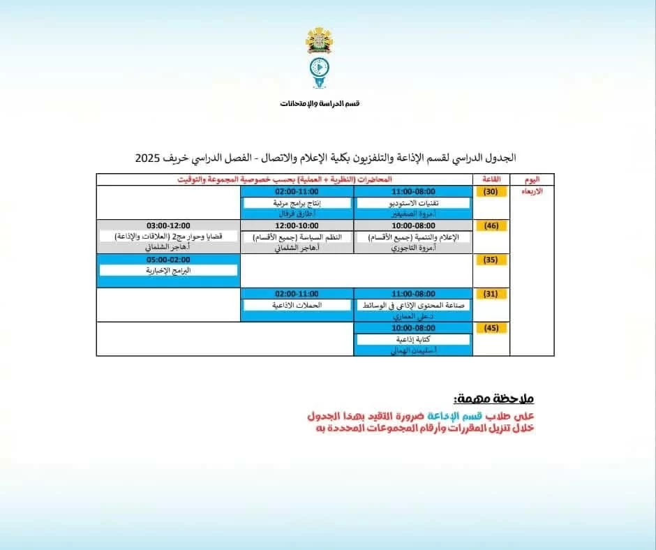 يوجد بـقسم الاذاعة والتلفزيون أكثر من 7 عضو هيئة تدريس