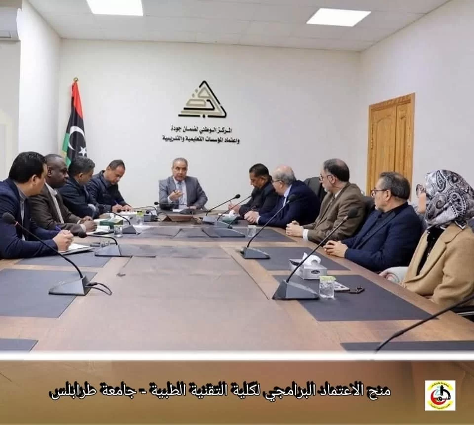 في إطار الاجتماع الذي جمع عمداء الكليات الطبية بجامعة طرابلس مع ممثلي المركز الوطني لضمان جودة واعتماد المؤسسات التعليمية والتدريبية ، تم اليوم الاحد الموافق 2025/02/23 م وبحمد الله الإعلان عن منح كلية التقنية الطبية الاعتماد البرامجي لمدة ثلاث سنوات ، كما تم تجديد الاعتماد المؤسسي