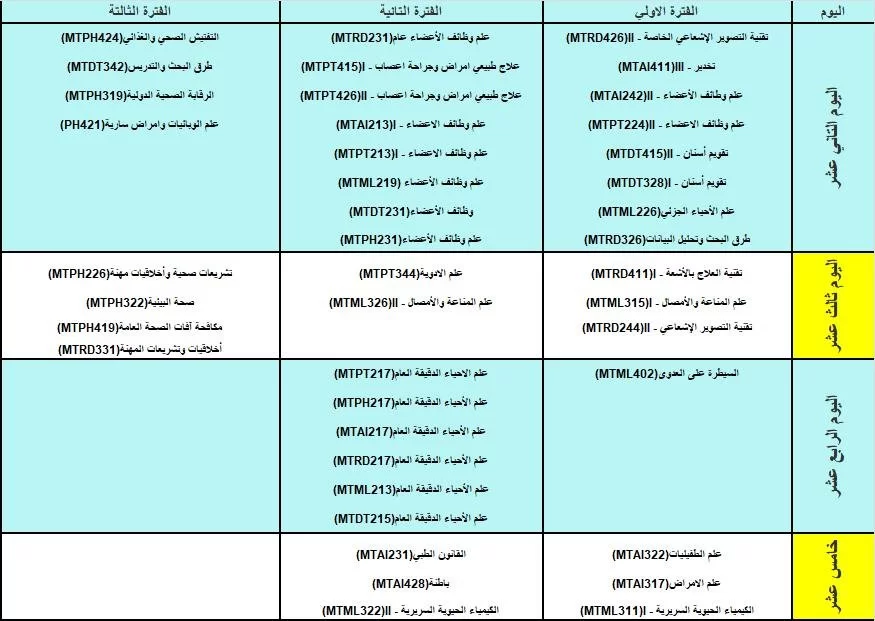جدول الامتحانات النصفية والنهائية خريف 2023م