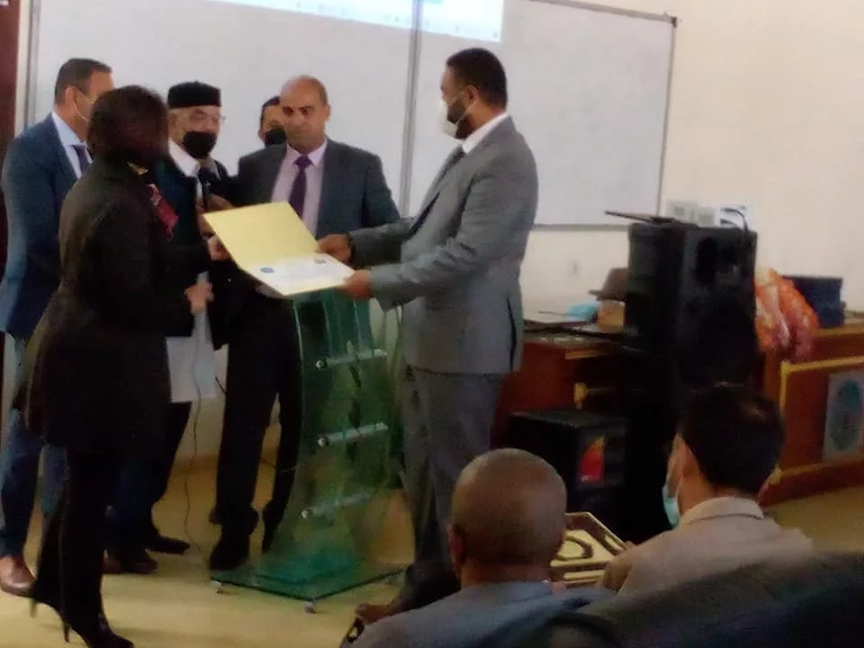 في الذكرى الأربعين لتأسيس كلية الأقتصاد والعلوم السياسية بجامعة طرابلس اقيم حفل صباح يوم الاربعاء الموافق 2021/03/31م بقاعةكلية الاقتصاد والعلوم السياسية بحضور كلا من السادة الكرام :-بالنيابة عن رئيس الجامعة وكيل الجامعة للشؤون العلمية السيد/د.المبروك فارس.وبحضور السادة الكرام :-السيد/ أ.د عبدالرزاق عبدالسلام العوزي وكيل الجامعة للكليات الطبية.والسيد/ د. فوزية بن غشير مدير إدارة الخدمة الإجتماعية بوزارة التعليم .السيد/ د. عبدالرؤوف محمد الكردي مدير التفتيش والمتابعة بالجامعة.السيد/ د. سعيد أبوبكر مدير مكتب الاستثمار بالجامعة.السيد/ أ. عبدالحليم ابوظهير مدير إدارة الرقابة الإدارية العامة لرئاسة مجلس الوزراء . السيد/ أ.د. محمد محمد أنور السيد عميد كلية التقنية الطبية السيد./ أ. ابراهيم الخضراوي مدير مكتب المراجعة بالجامعة.السيد/ أ. عبدالسلام عبدالجواد. المدير المالي بالجامعة.السيد/ د. أسامة الأزرق رئيس نقابة اعضاء هيئة التدريس بالجامعة.السيدة/ نسرين التاورغي من مكتب النشاط بالجامعة.السيدة / شادية الزغداني من مكتب النشاط بالجامعة.وبعض من عمداء الكليات بالقطع"أ" والقاطع "ب"وفي الختام تم تكريم حشد من المسؤولين بجامعة طرابلس ومنهم السيد / أ. أسامة امحمد حويتة منسق اللجنة العليا للاحتفال وذلك من قبل السيد/ أ.د.محمود عبدالحفيظ المغبوب عميد كلية الاقتصاد والعلوم السياسية والسيد/ د. المبروك ابوفارس والسيد/ أ.د عبدالرزاق العوزي والسيدة فوزية بن غشير والسيد / د. أسامة الأزرق.كما نتقدم بأسمى آيات الشكر لكل الحضور هذه الاحتفالية.والشكر موصول للسيد /أ.هيثم الرتيمي مدير المكتب الاعلامي والناطق الرسمي بأسم جامعة طرابلس على التغطية الاعلامية لهذا الحدث.المصدر:المكتب الاعلامي بالكلية.
