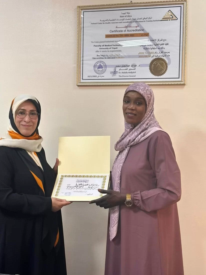 في لفته كريمة من السيدة ا.د.عائشة قشوط عميد الكلية حيث قامت بتكريم السيدات: ا. فاطمة موسى محاسبة الكليه ا. فتحية المبروك. رئيس وحدة الخريجين بالكلية ا . امال التارقي. وحده الخزينة بالكلية وذلك لتفانيهم في عملهم وحرصهم علي ان يكون في احسن صوره وهدا التكريم يعكس حرص ادارة الكلية تكريم المتميزين في عملهم فهنيا لكلية التقنية الطبيه بمثل هؤلاء السيدات المتميزات