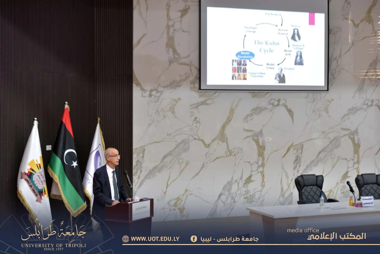 أقيمت صباح اليوم الاثنين الموافق 5 يونيو 2023 م ندوة حوارية بعنوان: "انهيار جليدي قادم" داخل مدرج رشيد كعبار بتنظيم المنظمة الليبية للخبراء والاستشارات بحضور: السيد أ.د. خالد عون رئيس جامعة طرابلس، رفقة عدد من رؤساء الجامعات الليبية، والشخصيات السياسية والأكاديمية، وعمداء ووكلاء بعض الكليات والمهتمين بالمجال، حيث تناولت محاور ذات أهمية قصوى حول واقع التعليم العالي والبحث العلمي ومستقبله في طل التطورات التقنية التي تطوي الزمن والمسافات والجهد، وكذلك المال لتدخل الرقمنة والكيف أمام الكم، حيث أن تدفق المعلومات سيهز قواعد التعليم في ثورة غير مسبوقة في التعليم العام والخاص التي ستؤثر على سلوك المتعلمين وأنماطهم.