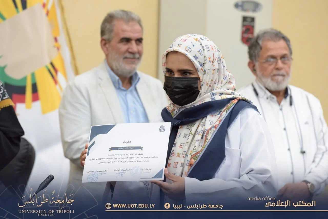 حفل اختتام وتكريم موظفي المستوصف الجامعي متدربين دورة الإسعافات الأولية والطوارئ