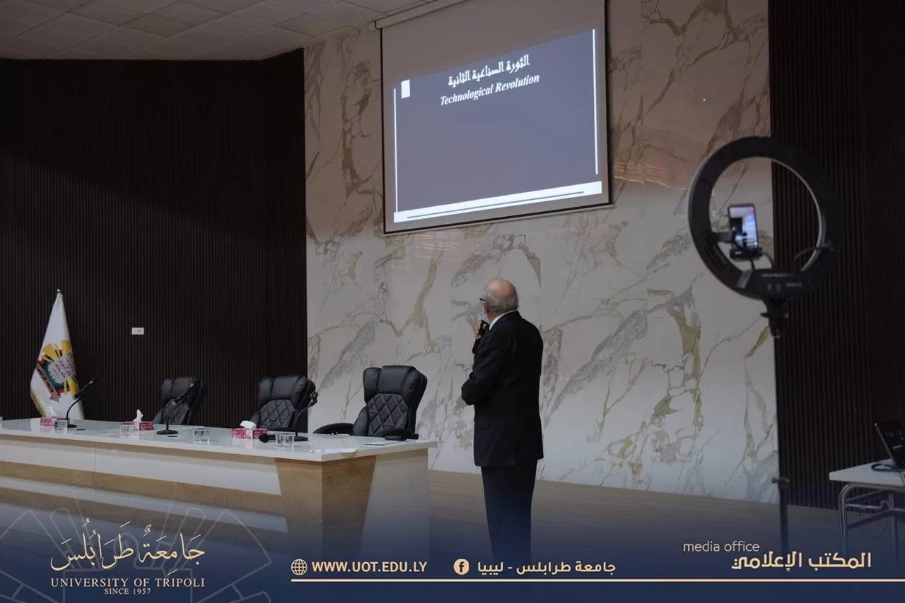 أقيمت صباح اليوم الأربعاء الموافق 14 يونيو 2023 م محاضرة علمية بعنوان "الثورة الصناعية الرابعة تطرق الأبواب، هل من مجيب؟" التي ألقاها السيد أ.د. المدني أبو القاسم دخيل رئيس جامعة طرابلس الأسبق وأستاذ شرف بكلية العلوم جامعة طرابلس ضمن نشاطات منتدى جامعة طرابلس الثقافي، وبحضور عمداء كليات وأعضاء هيئة التدريس وطلبة الدراسات العليا والمهتمين، حيث سلطت المحاضرة الضوء على الثورة الصناعية الرابعة التي تطرق أبواب المجتمعات دون استثناء التي يقودها الذكاء الاصطناعي والعديد من التقنيات الحديثة الأخرى التي تشابكت خيوطها لتنسج مستقبلاً سيغير جميع مناح الحياة وأساليب العيش منها كيف نتواصل؟ وكيف نصنّع؟ وكيف نتعامل مع بعضنا البعض؟ وحتى إمكانية بقاء البشرية على وجه الأرض.