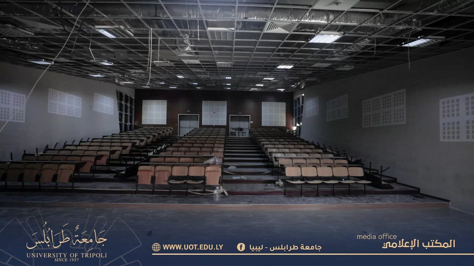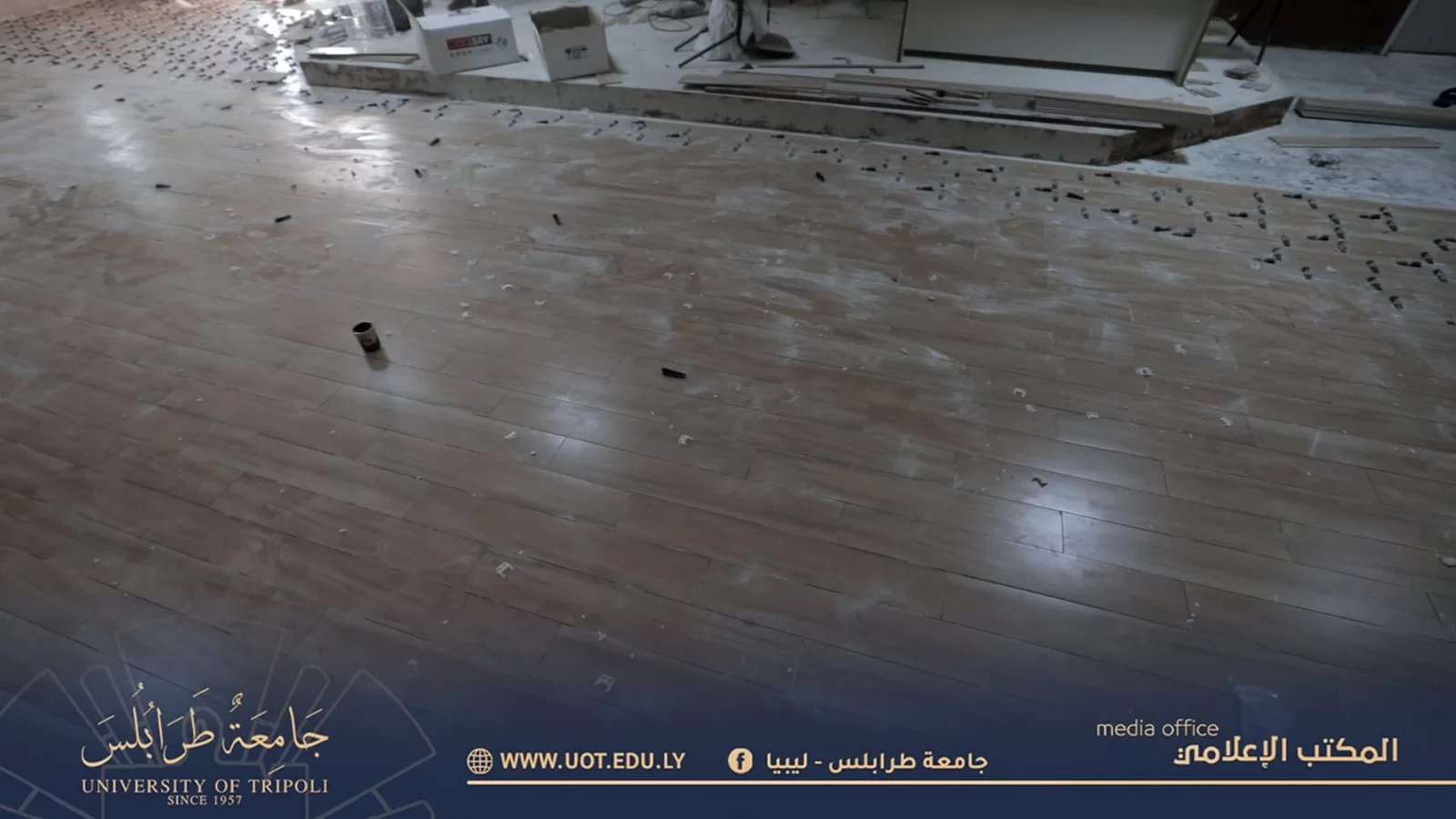 مقتطفات من صيانة مدرجات كلية الطب البشري بجامعة طرابلس والمرافق التابعة لها التي جاءت ضمن الخطة التي وضعتها رئاسة جامعة طرابلس سعياً منها لتوفير بيئة تعليمية ملائمة لأبنائها الطلبة. كما نتقدم بأسمى آيات التقدير والامتنان لكافة الجنود العاملين على إتمام هذا الإنجاز.