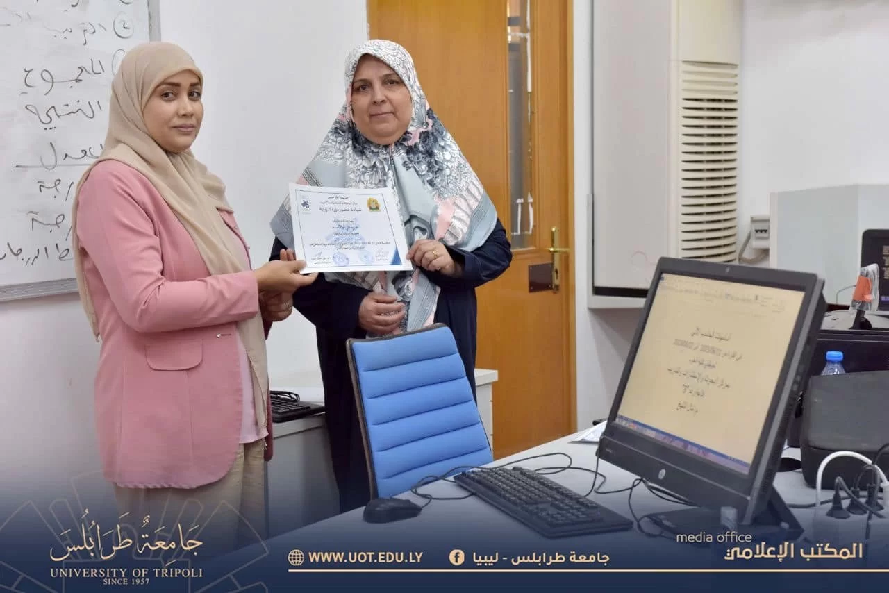 اختتمت اليوم الخميس الموافق 22 يونيو 2023م دورة تدريبية بعنوان "أساسيات الحاسوب" التي أشرفت عليها المدربة م. آمال الشيخ بتنظيم مركز البحوث والاستشارات والتدريب بجامعة طرابلس، وقد استمرت لمدة خمس أيام متتالية إبتداءً من يوم الأحد الماضي الموافق 11 يونيو 2023م حتى اليوم الخميس مستهدفة موظفي كلية العلوم.