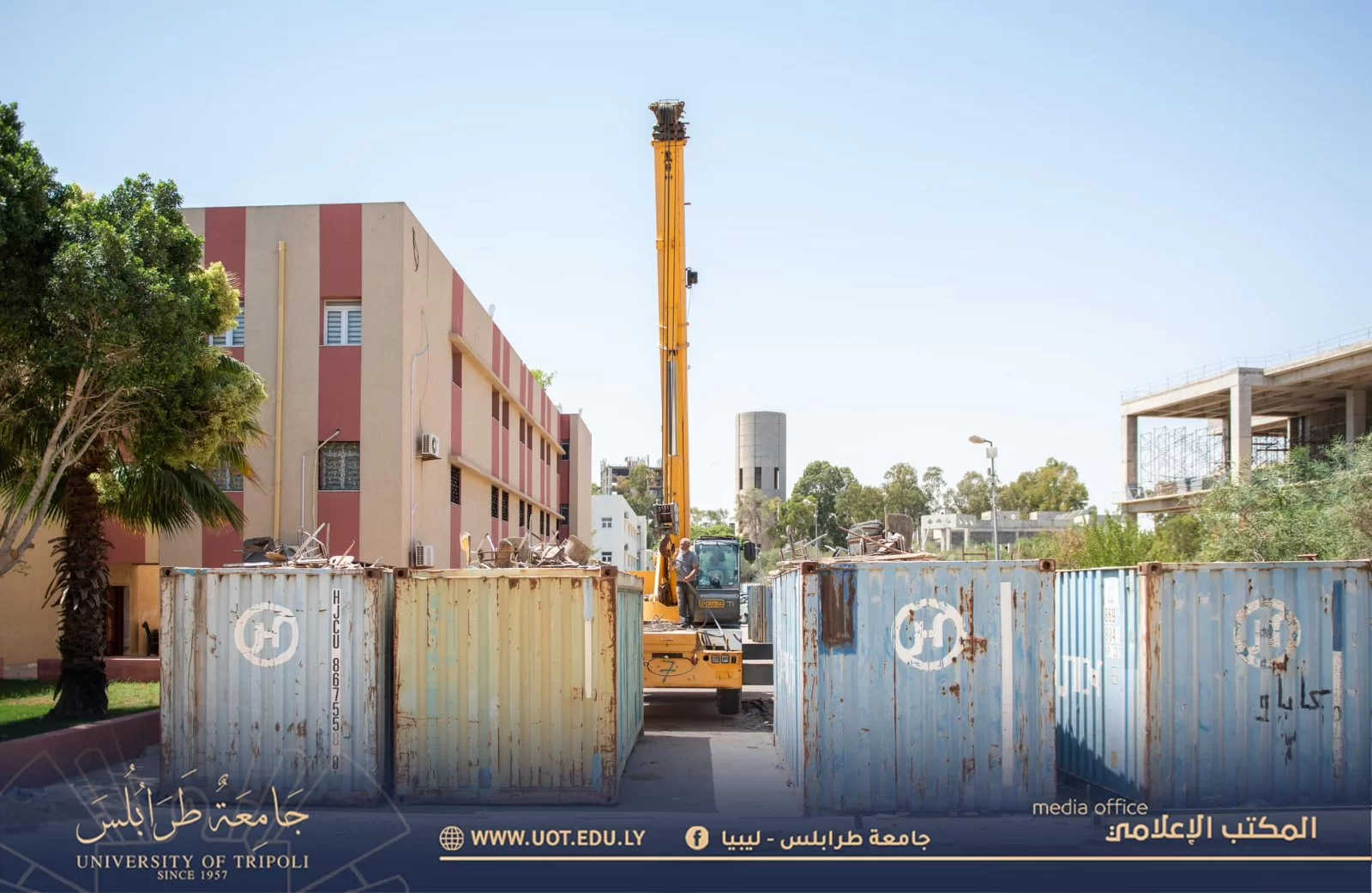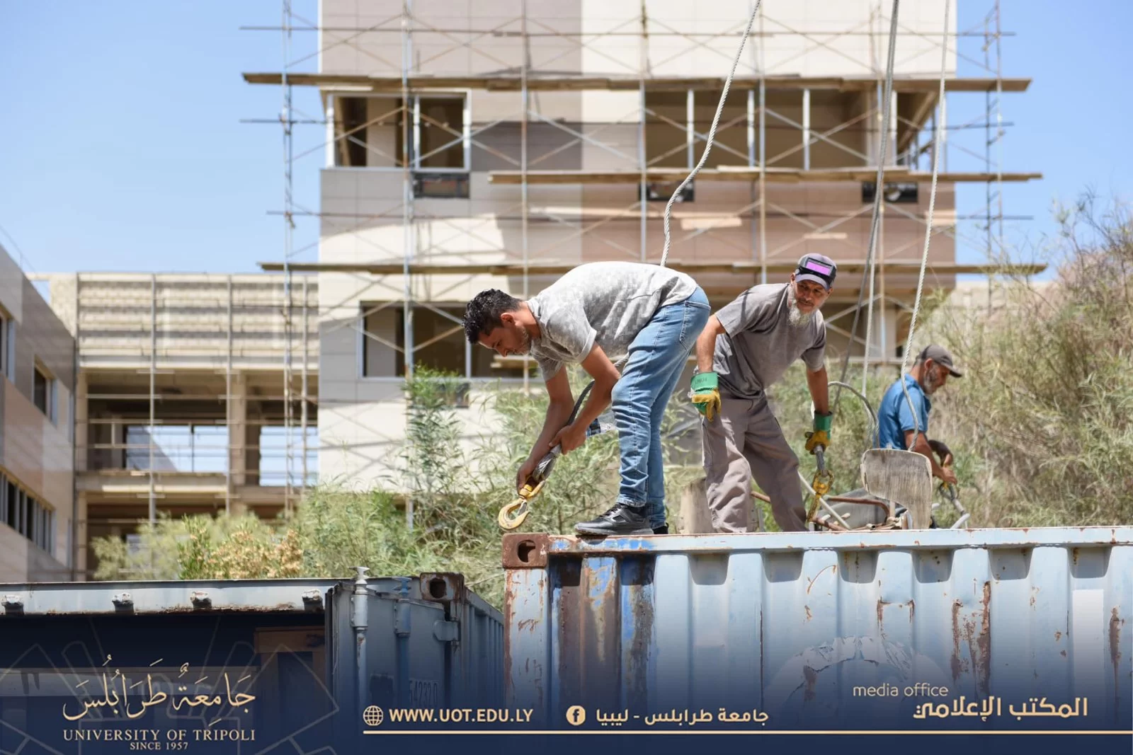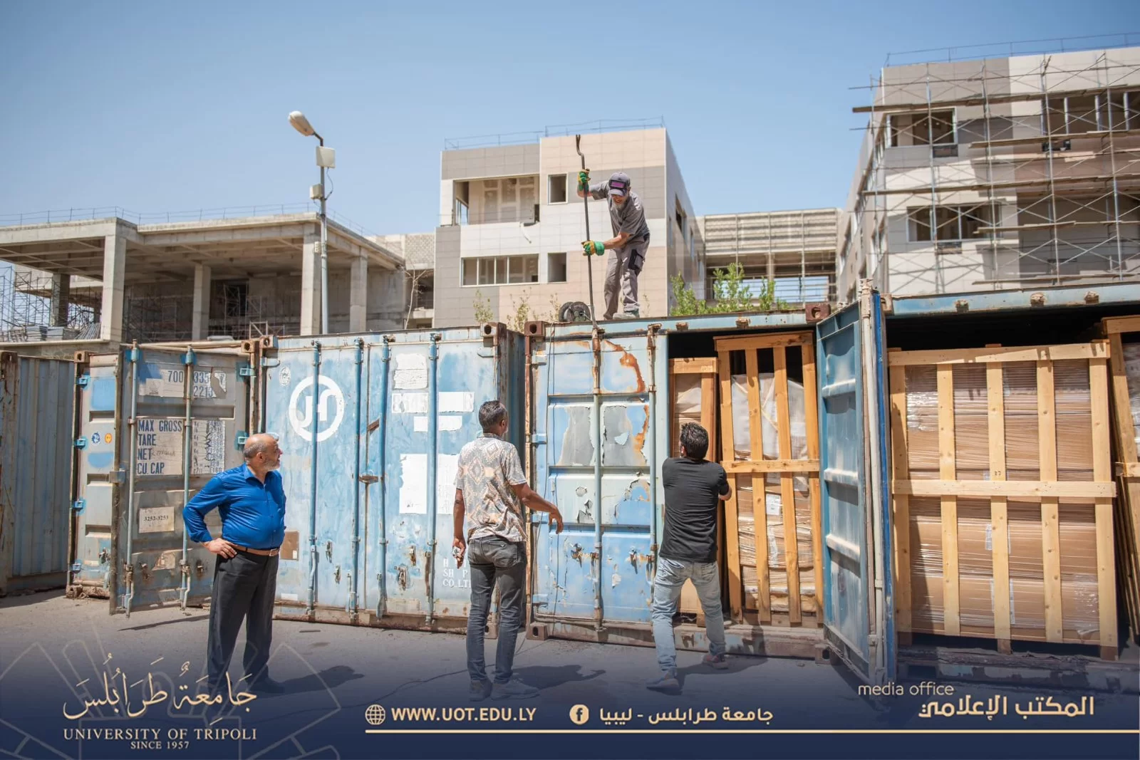 باشرت صباح اليوم الثلاثاء الموافق 4 يوليو 2023 م اللجنة المكلفة باستلام معدات المعامل التعليمية بفتح حاويات المعدات المُوردة لجامعة طرابلس من قِبل وزارة التعليم العالي والبحث العلمي وذلك بحضور السيد د. خالد غومة رئيس جامعة طرابلس المكلف والسيد أ. عبد الله الترهوني مدير المكتب الإعلامي بجامعة طرابلس رفقة السادة أعضاء اللجنة، حيث سيتم توزيع هذه المعدات فيما بعد على كليات جامعة طرابلس كُلاً حسب احتياجها.كما سيتم إعداد تقرير مُفصل حول عملية تقسيم المعامل التعليمية للسيد وزير التعليم.