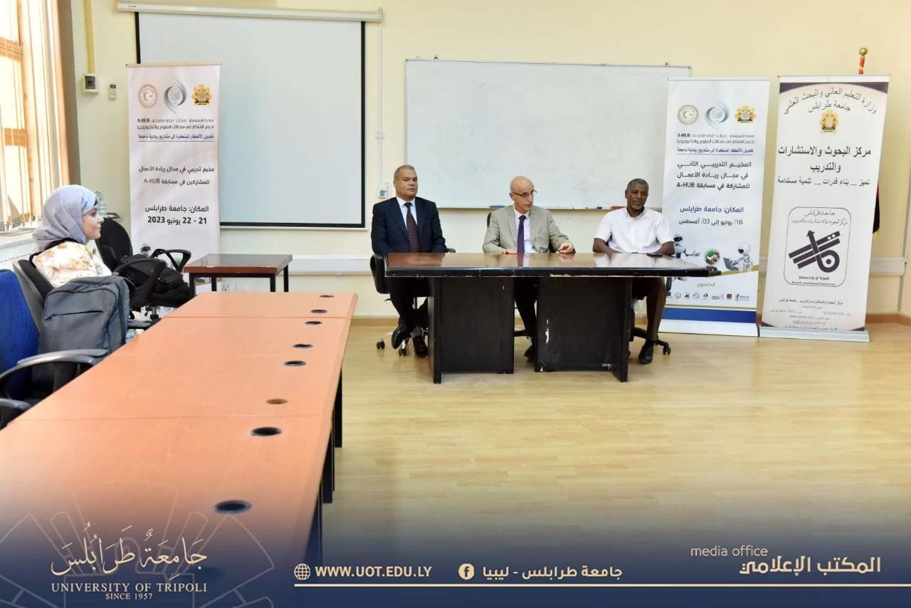 افتتح صباح يوم الأمس الأحد الموافق 16 يوليو 2023م المخيم التدريبي الثاني للمشاريع المتأهلة للمرحلة الثالثة والنهائية من مسابقة ريادة الأعمال المحلية A-HuB. حيث شارك فى الافتتاح السيد رئيس جامعة طرابلس والمشرف العام على المسابقة رفقة عدد من المدربين والمتدربين. وجاء هذا البرنامج التدريبي الذي يتخلله العديد من النشاطات التدريبية التفاعلية لدعم مهارات وقدرات المشاركين اللازمة للرفع من مستوى مشاريعهم الريادية، كما يشارك فى التدريب -أيضاً- عدد من الخبراء فى مجال ريادة الأعمال وتقنية المعلومات. والجدير بالذكر أن هذا البرنامج التدريبي يستمر لمدة ثلاثة أسابيع، ويشارك به عدد 10 مشاريع متميزة من عدة مدن ليبية. وسيتم في نهاية المخيم اختيار أفضل ثلاثة مشاريع لتمثل دولة ليبيا في المسابقة الدولية التي تشرف على تنفيذها منظمة العالم الإسلامي للتربية والثقافة والعلوم.
