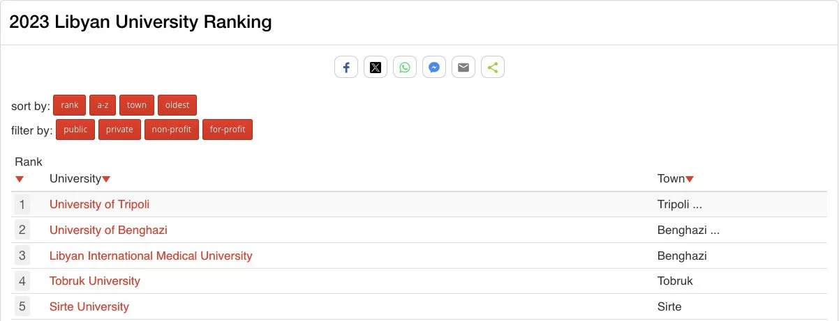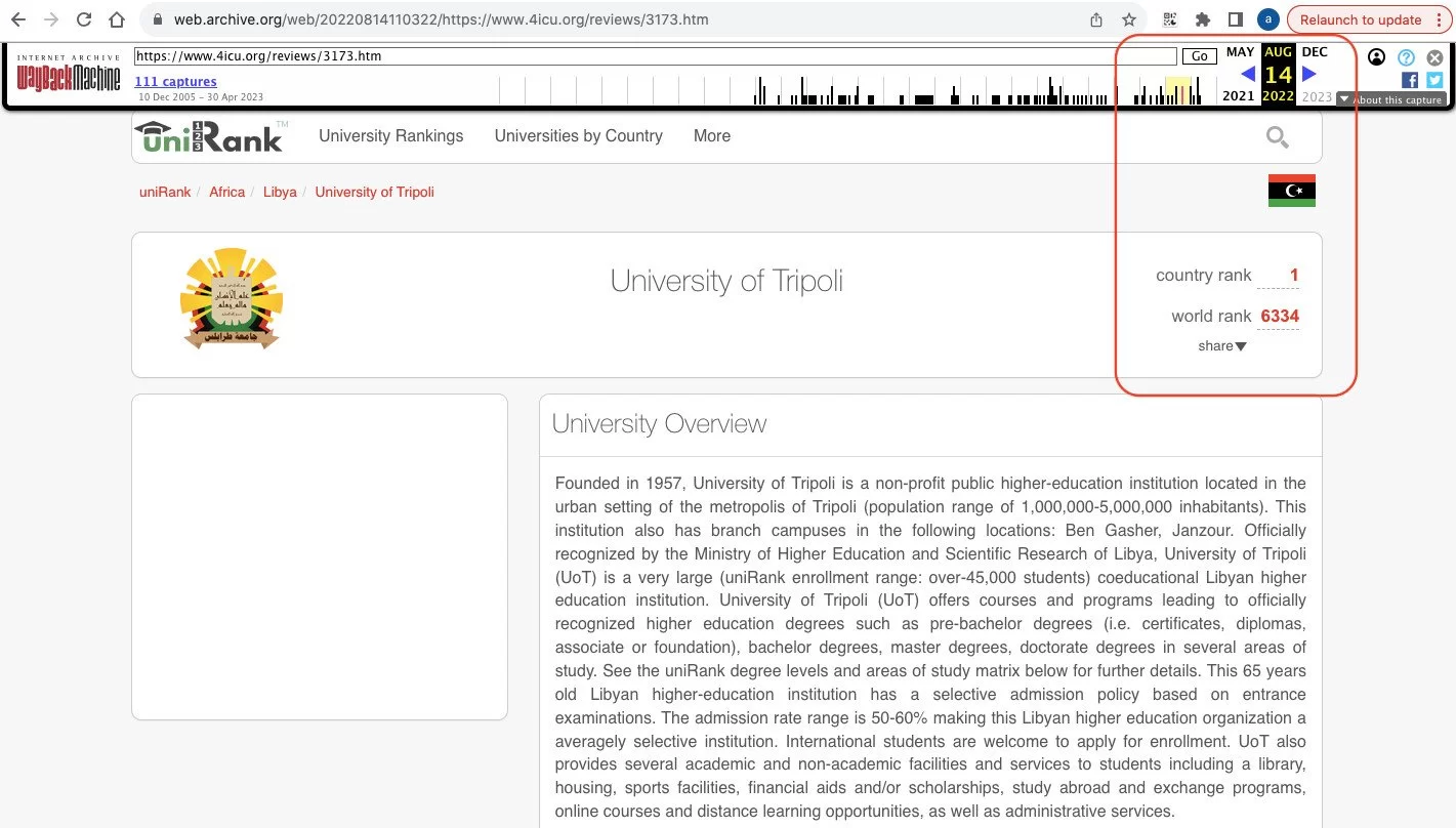 The University of Tripoli (UoT) advanced significantly in the UniRank 2023 world rankings at the global, Arab and African levels over the last year, as it maintained its undisputed position in the first rank in Libya.